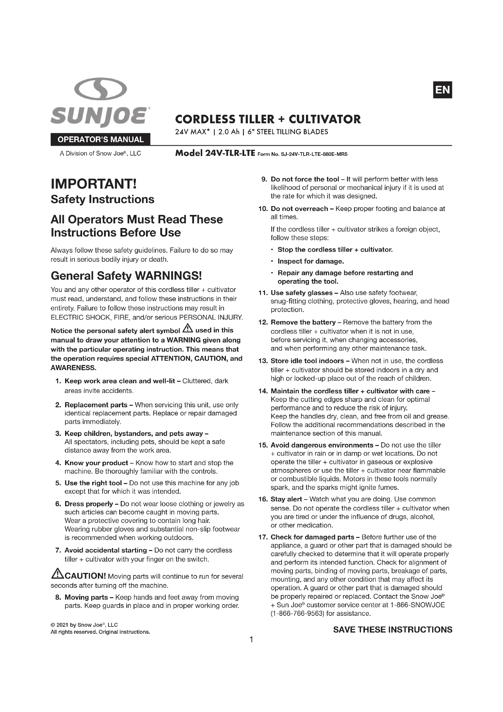 © 2021 by Snow Joe , LLCAll rights reserved. Original instructions.
