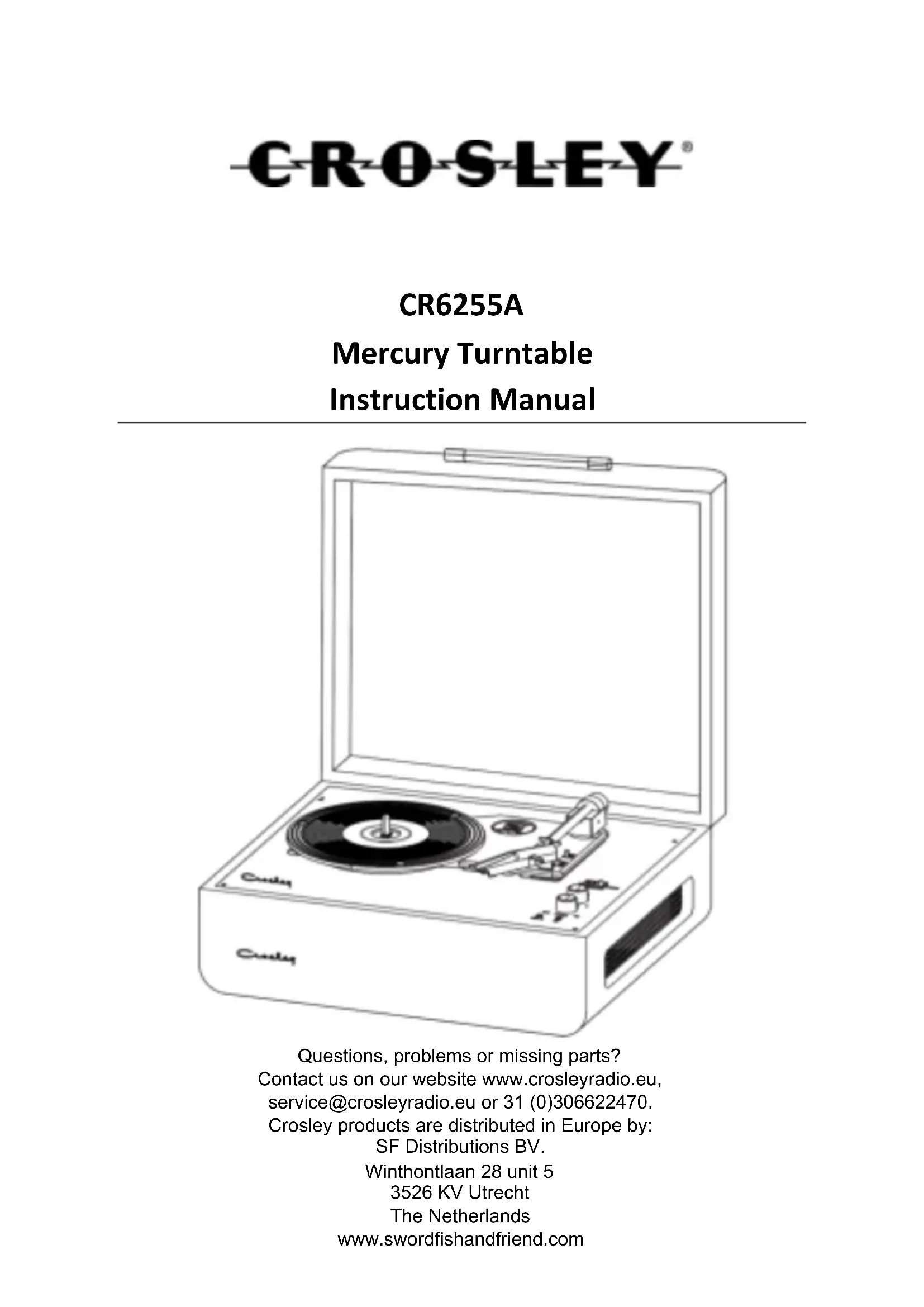 Download the instructions for your Turntable in PDF format for free! Find your manual Mercury CR6255A - Crosley and take your electronic device back in hand. On this page are published all the documents necessary for the use of your device. Mercury CR6255A by Crosley.