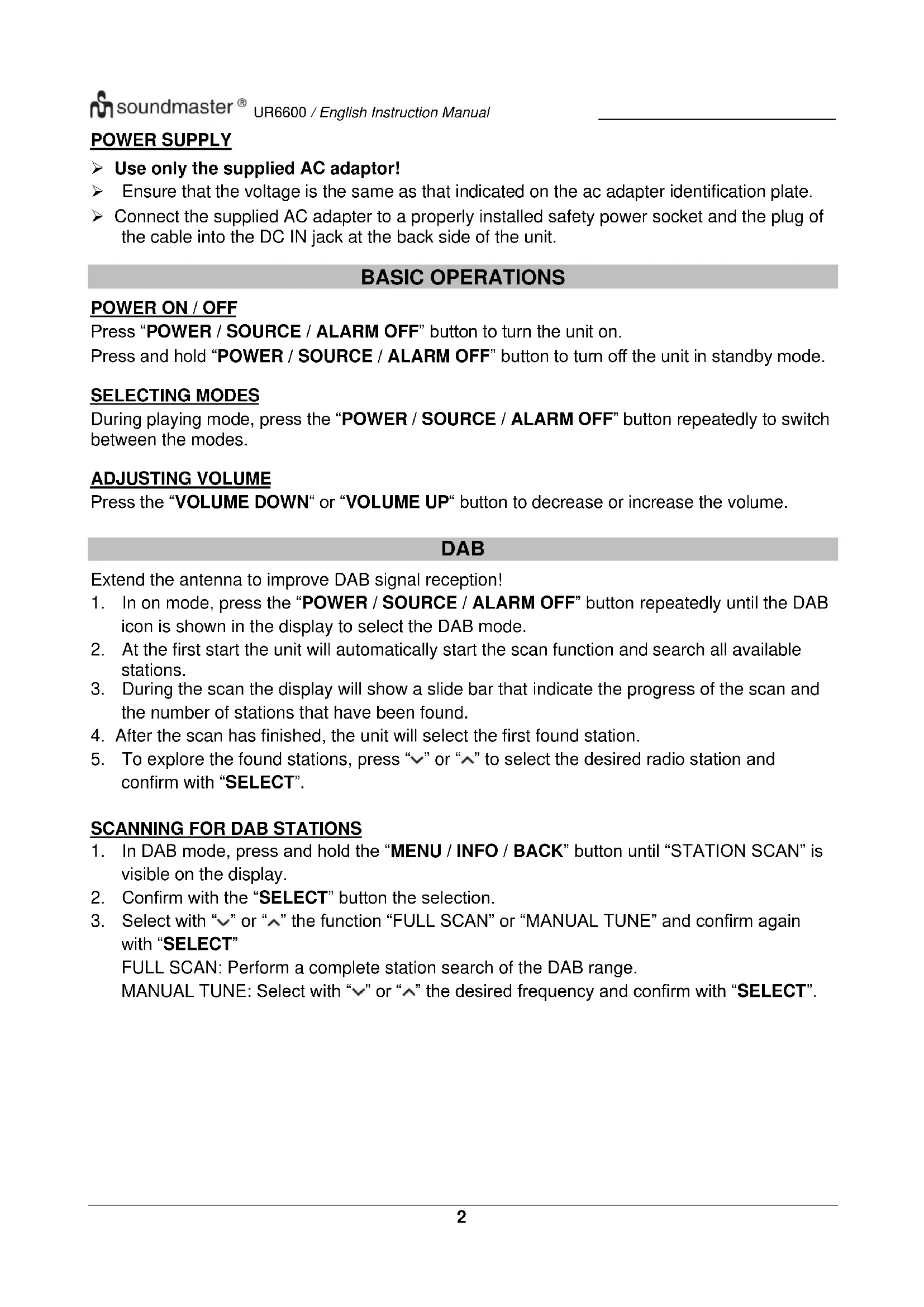 USER MANUAL UR6600 Soundmaster