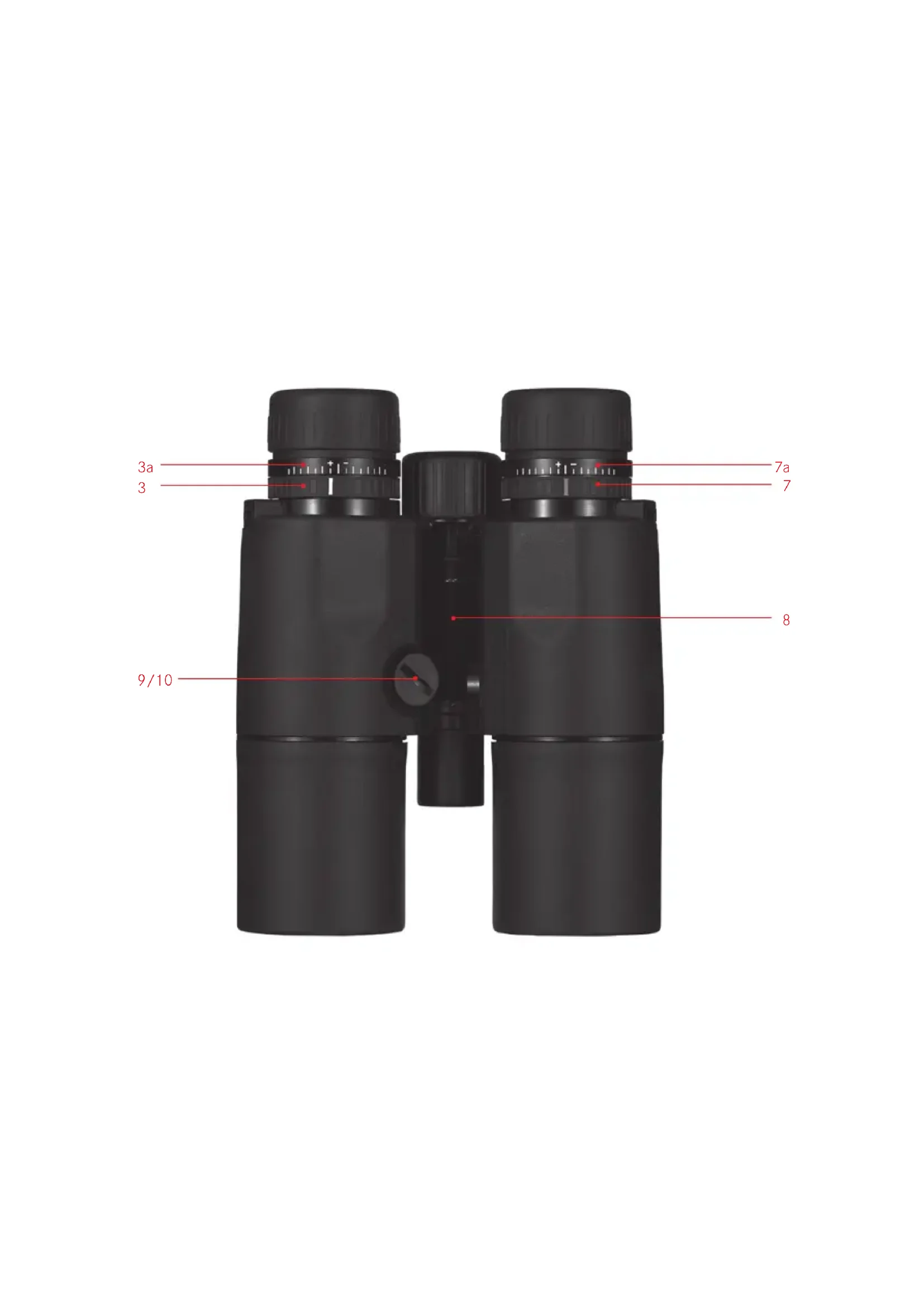 Bending the binoculars about the hinged axis (8) individually adjusts the eye spacing. The right and left field of vision should merge into a circular image.23 english