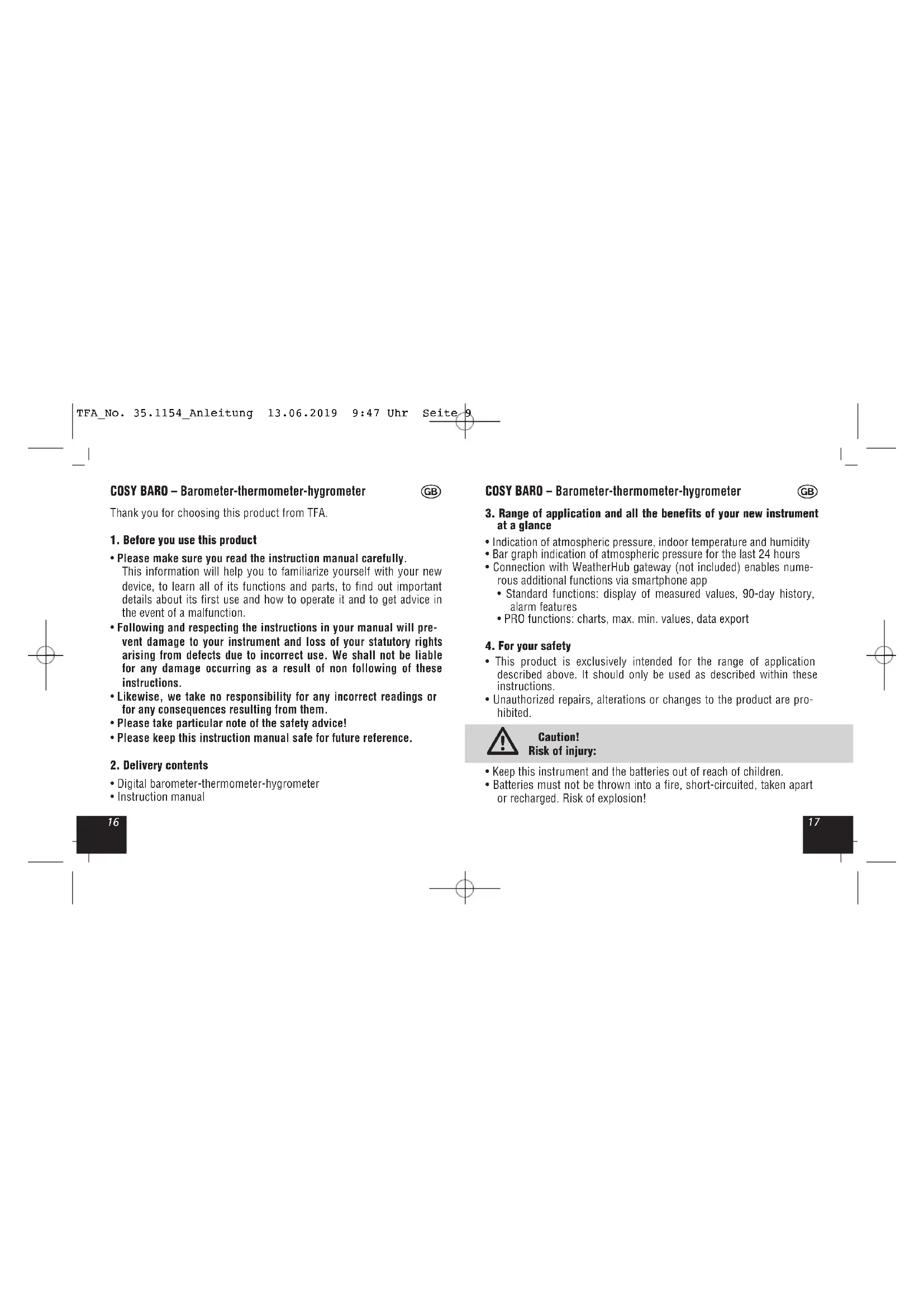 Cosy Baro 35.1154.01 - Measuring equipment TFA - Free user manual and instructions