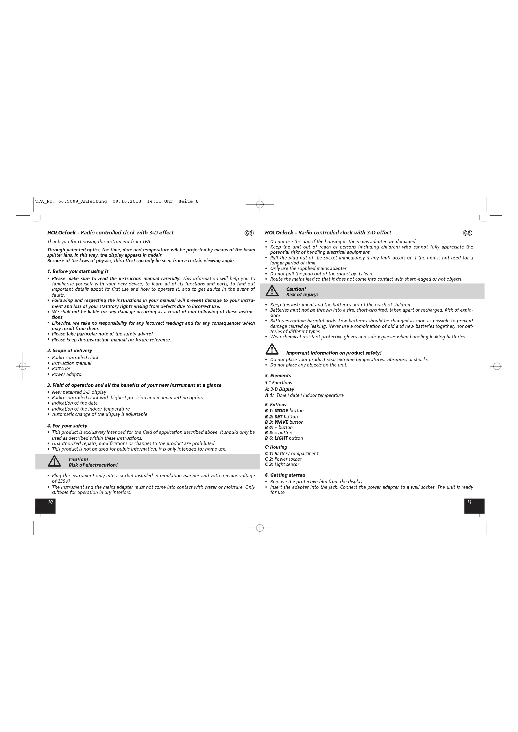 Find the device manual for free HOLOclock 60.5009.04 TFA in PDF.