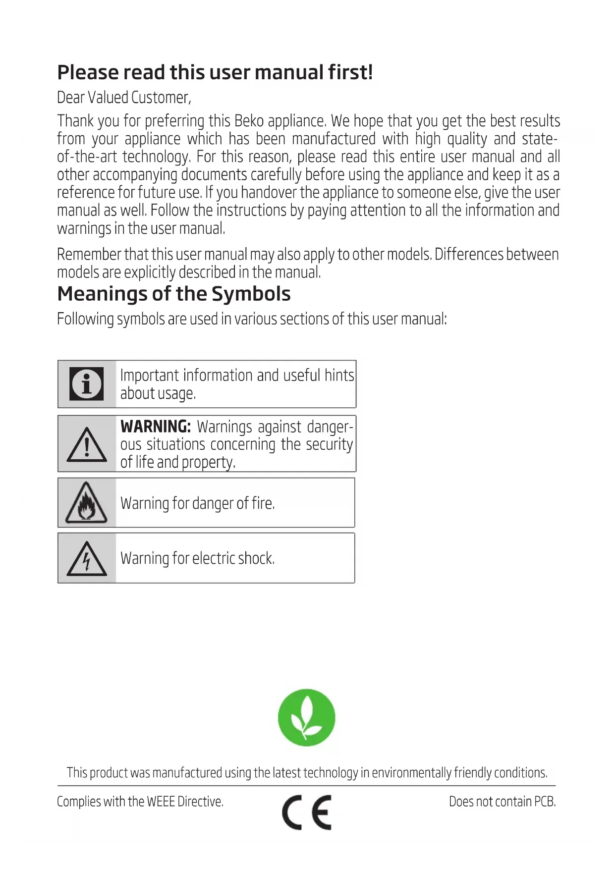 www.beko.com Hood User manual HCA63640B HCA63640BH HCA93640BH HCA93641BH HCA63640Z HCA63640W EN DE ES FR PL NL CZ IT SL SK UA RU RO PT BG LT LVloading-circle-1Comples wth the WEEE Drectve. Ths product was manufactured usng the latest technology n envronmentally frendly condtons. Please read this user manual first! Dear Valued Customer, Thank you for preferring this Beko appliance. We hope that you get the best results from your appliance which has been manufactured with high quality and state- of-the-art technology. For this reason, please read this entire user manual and all other accompanying documents carefully before using the appliance and keep it as a reference for future use. If you handover the appliance to someone else, give the user manual as well. Follow the instructions by paying attention to all the information and warnings in the user manual. Remember that this user manual may also apply to other models. Differences between models are explicitly described in the manual. Meanings of the Symbols Following symbols are used in various sections of this user manual: