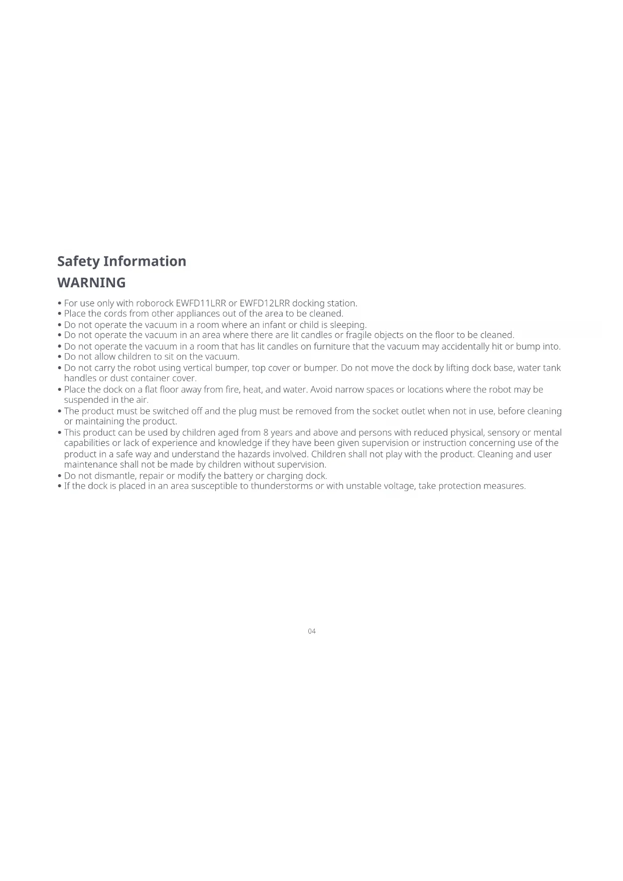 For use only with roborock EWFD11LRR or EWFD12LRR docking station.