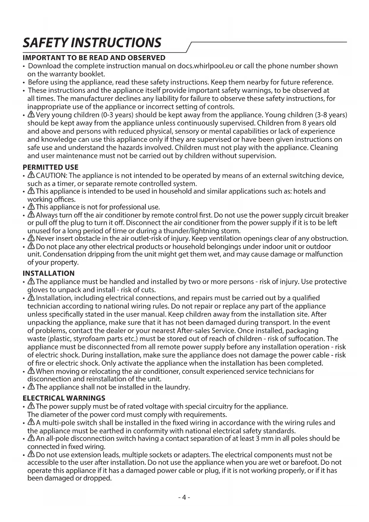 SPICR312A3WF - Air Conditioning WHIRLPOOL - Free user manual and instructions