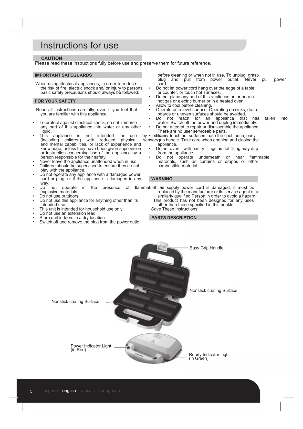 - peBscnst touch hot surfaces - use the cool touch, easy nnsorygrip handle. Take care when opening and closing the appliance.
