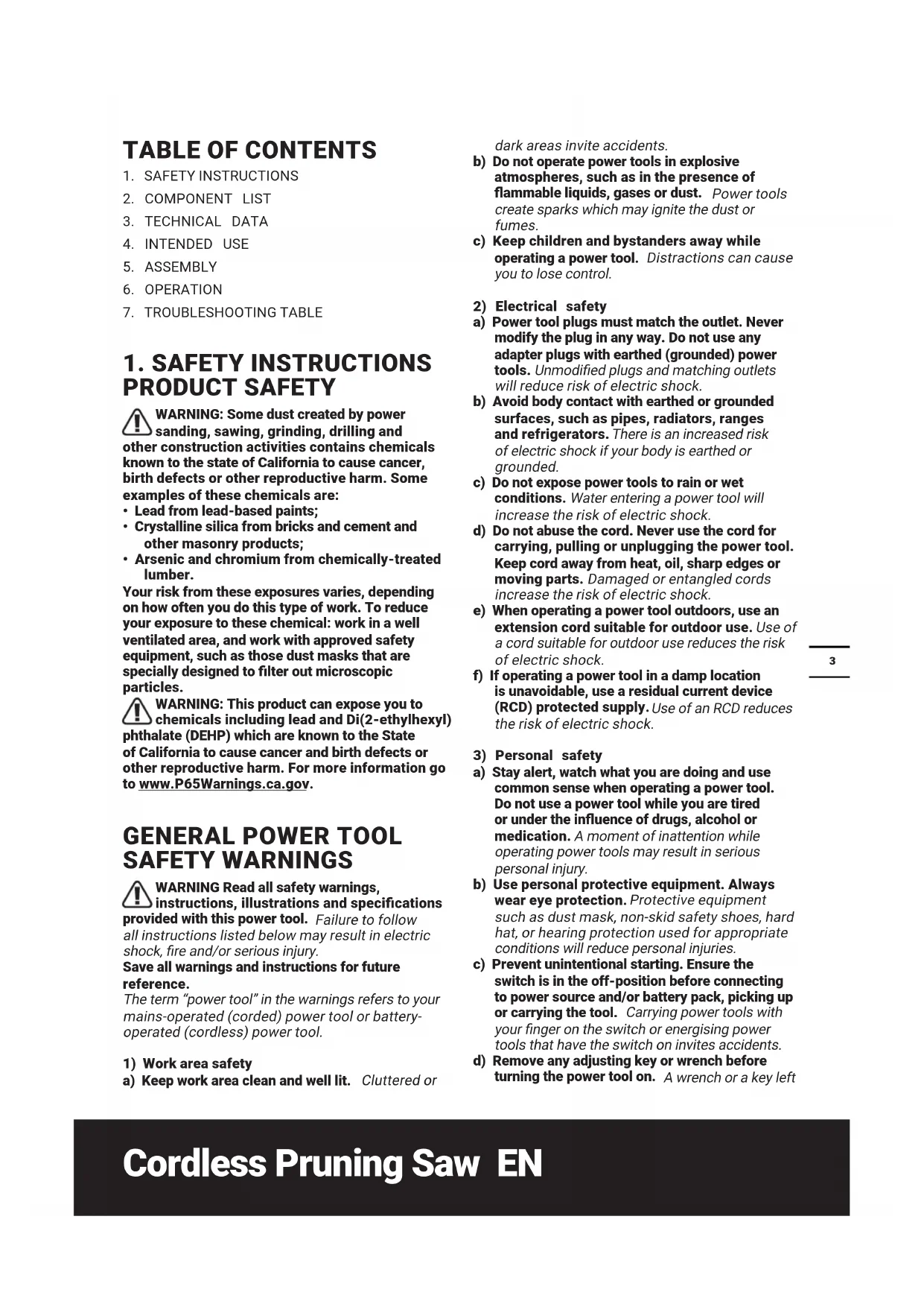 instructions. Failure to follow the warnings and instructions may result in &8<Cordless Pruning Saw EN