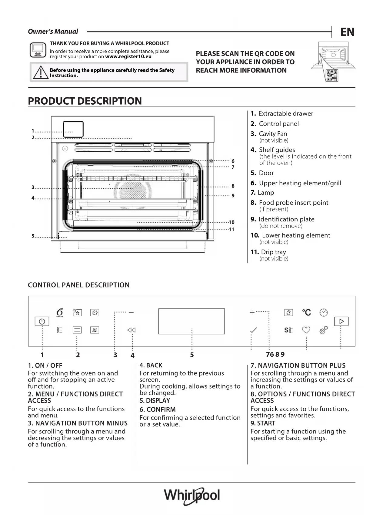 Owner’s Manual THANK YOU FOR BUYING A WHIRLPOOL PRODUCTIn order to receive a more complete assistance, please register your product on www . register10 . eu