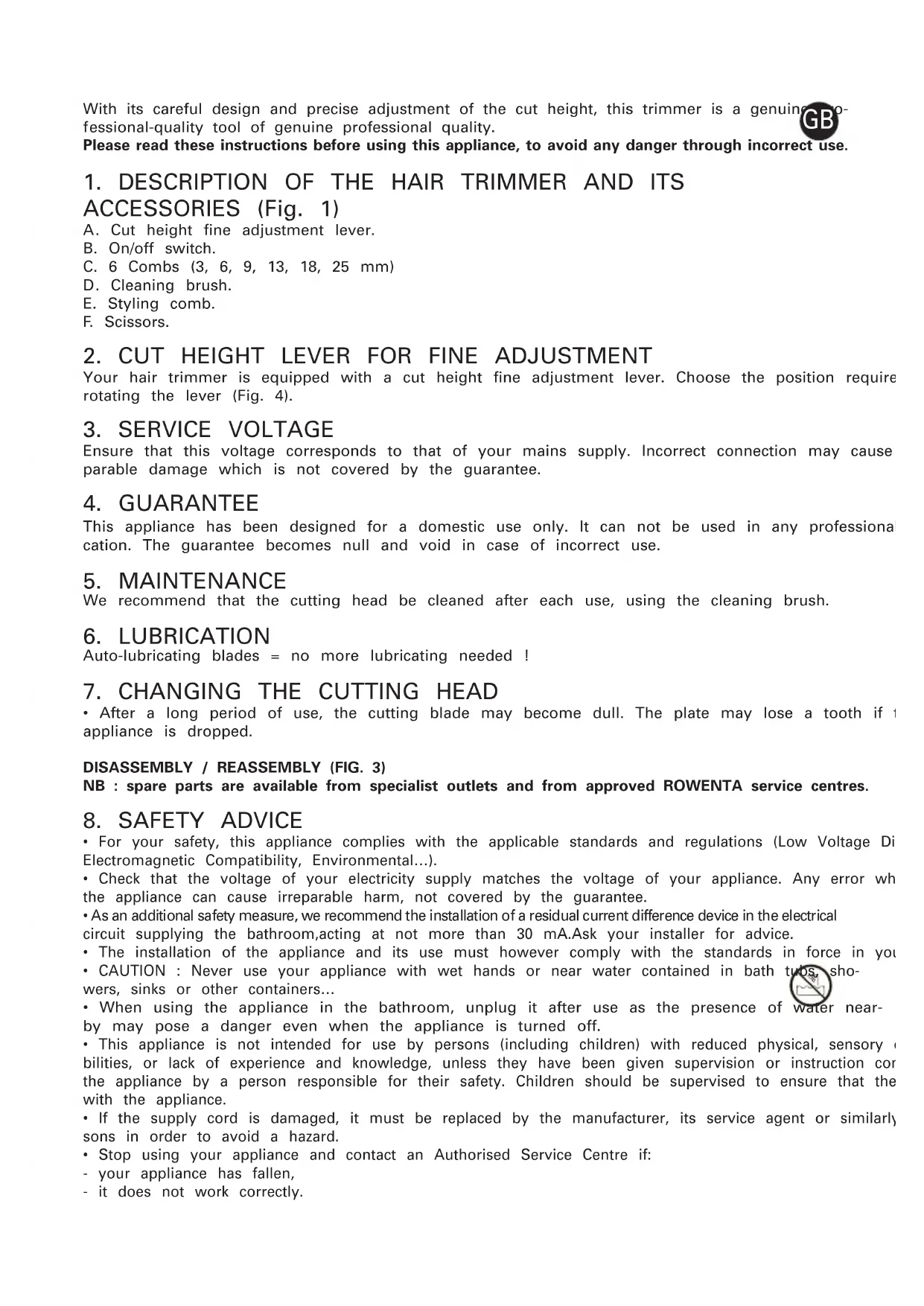 - See the "Contours and finish" chapter in the "Round Crew cut" section (fig. 29). ENVIRONMENT PROTECTION FIRST ! Your appliance contains valuable materials which can be recovered or recycled. Leave it a local civic waste collection point.