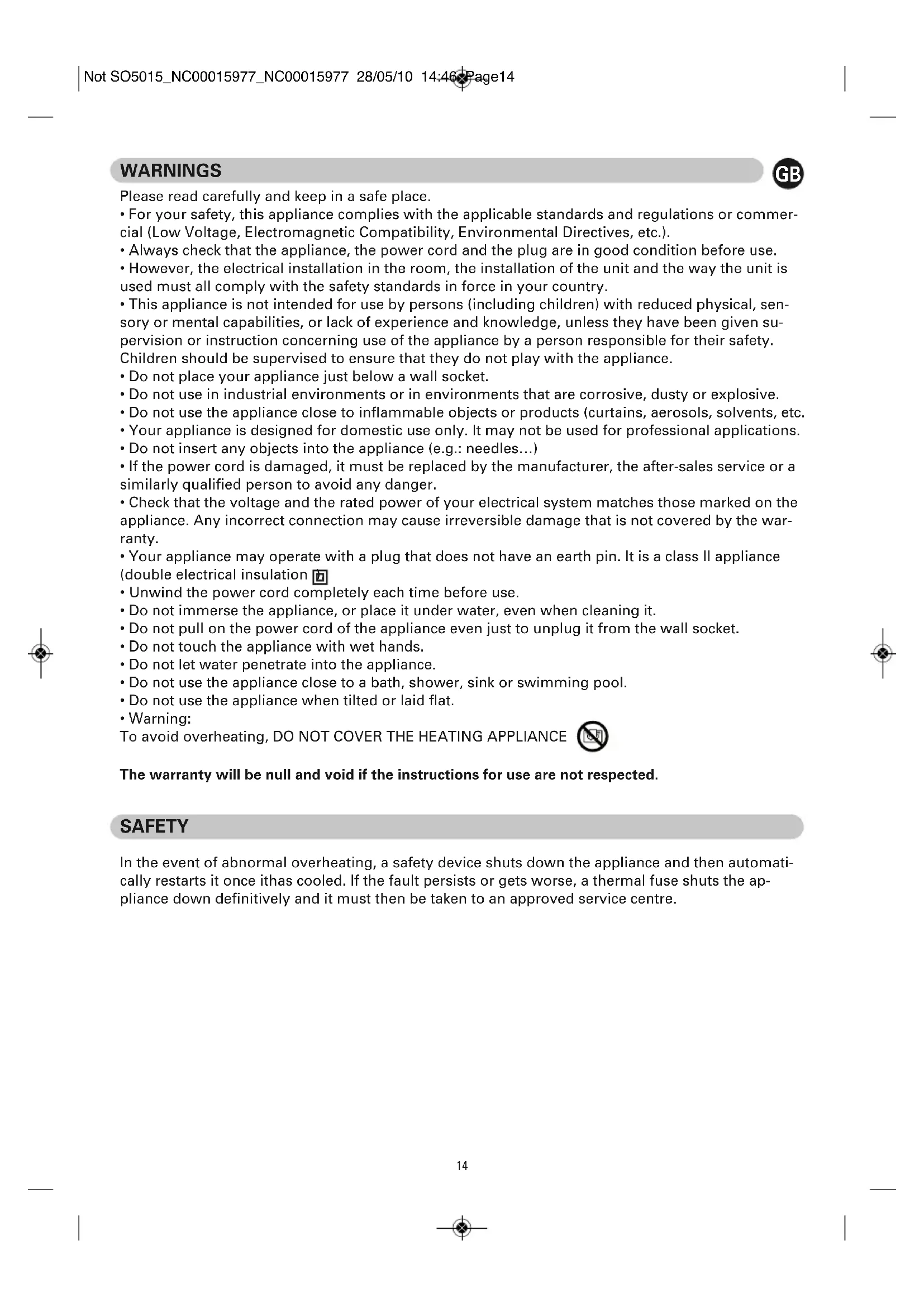Not SO5015_NC00015977_NC00015977 28/05/10 14:46 Page1314 WARNINGS Please read carefully and keep in a safe place.