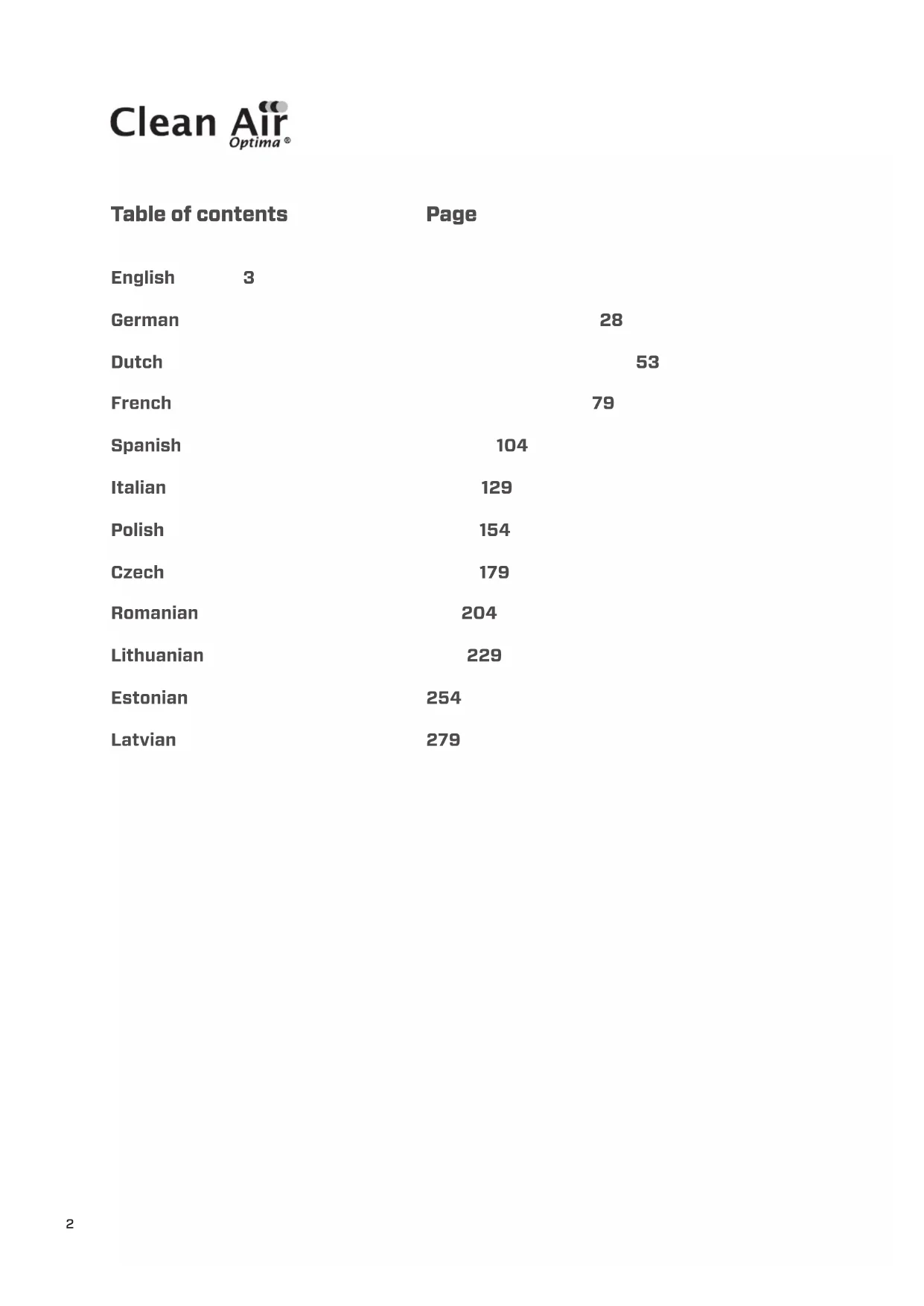 Find more languages on: www.cleanairoptima.com/ info/manuals