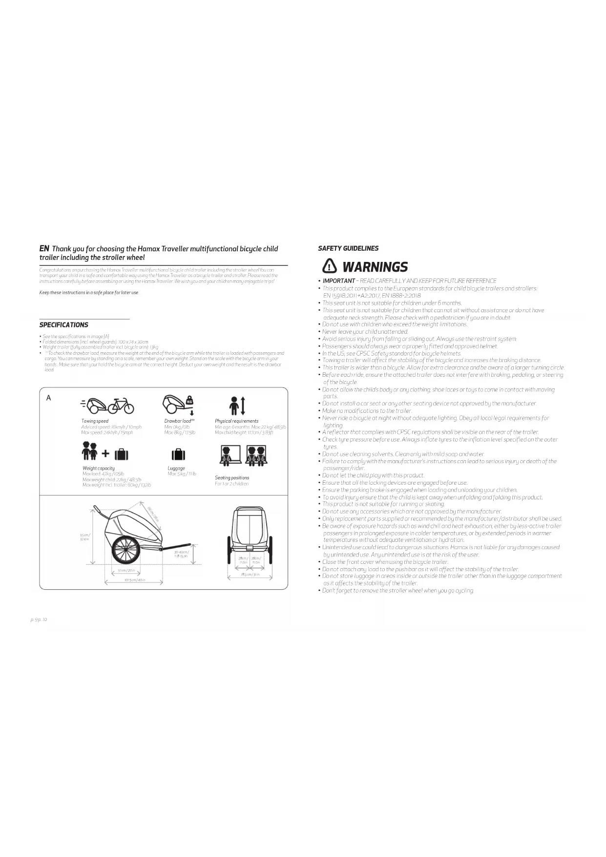 EN Thank you for choosing the Hamax Traveller multifunctional bicycle child trailer including the stroller wheel