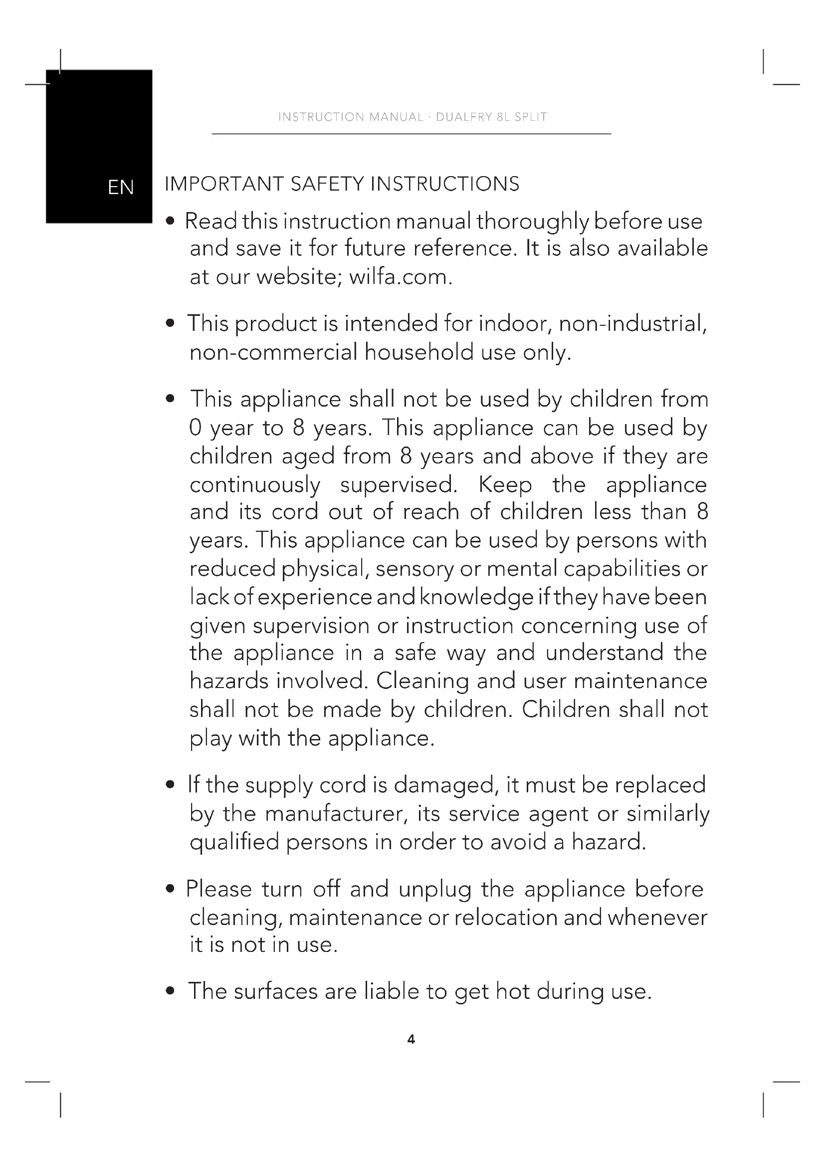 USER MANUAL DualFry 8L Split AFD80 WILFA