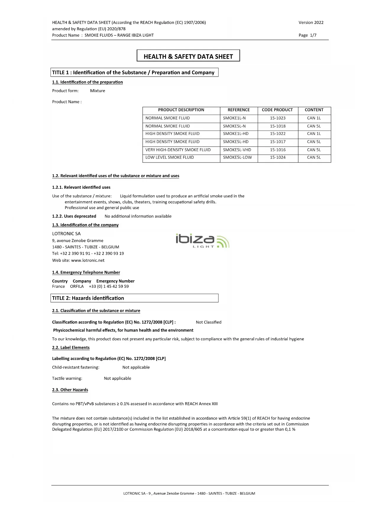 SMOKE5LHD - Chemical product IBIZA SOUND - Free user manual and instructions