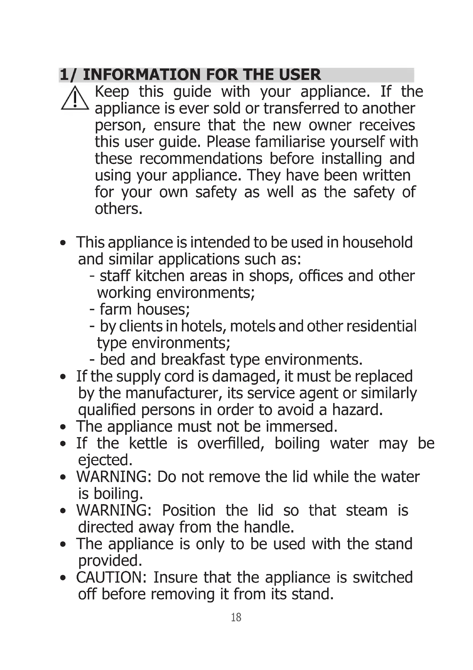 - CAUTION: Insure that the appliance is switched off before removing it from its stand.19