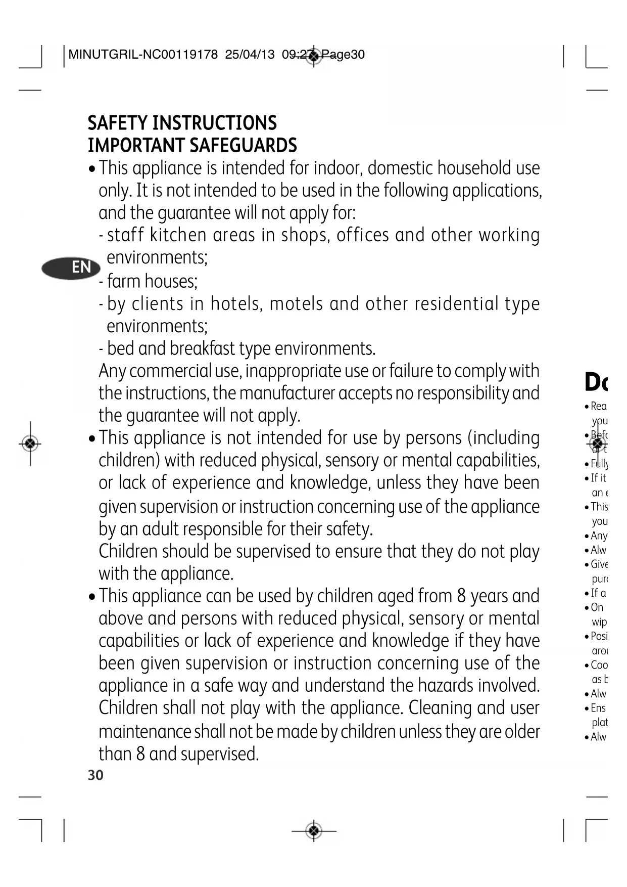 MINUTGRIL-NC00119178 25/04/13 09:27 Page30Keep the appliance and its cord out of reach of children less than 8 years.