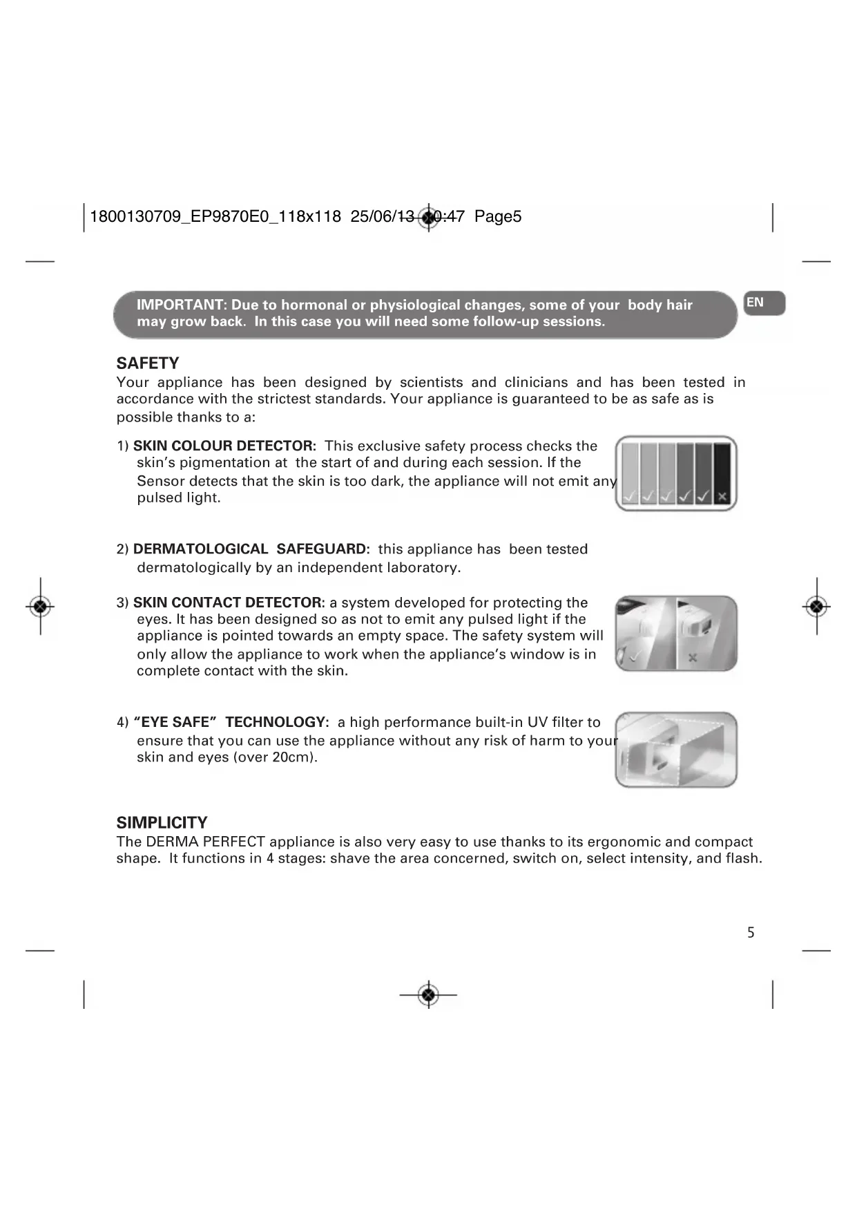 1800130709_EP9870E0_118x118 25/06/13 10:47 Page4SAFETY Your appliance has been designed by scientists and clinicians and has been tested in accordance with the strictest standards. Your appliance is guaranteed to be as safe as is possible thanks to a: