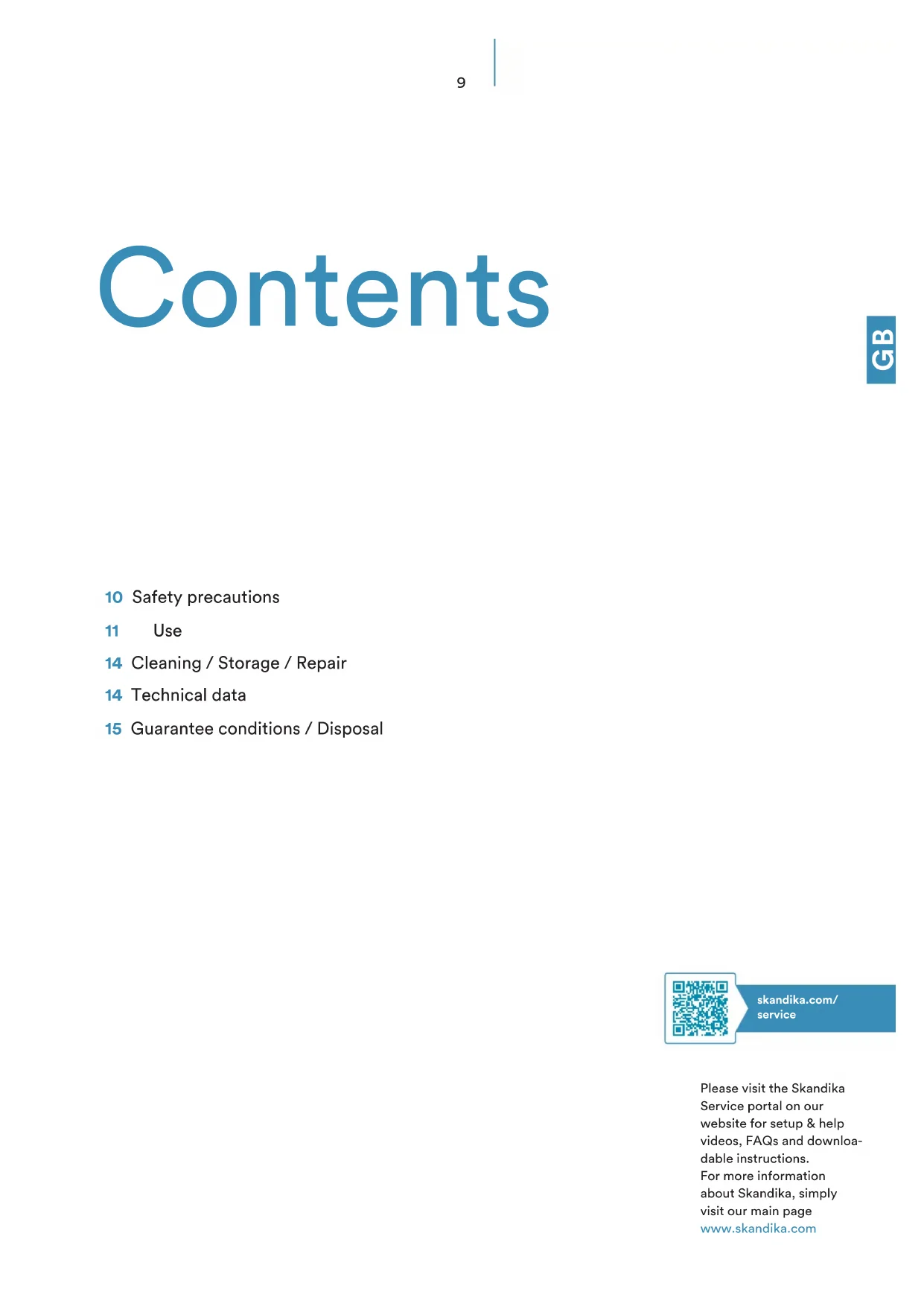 - In case of problems, please contact our customer service at: service@skandika.de SAFETY PRECAUTIONS11