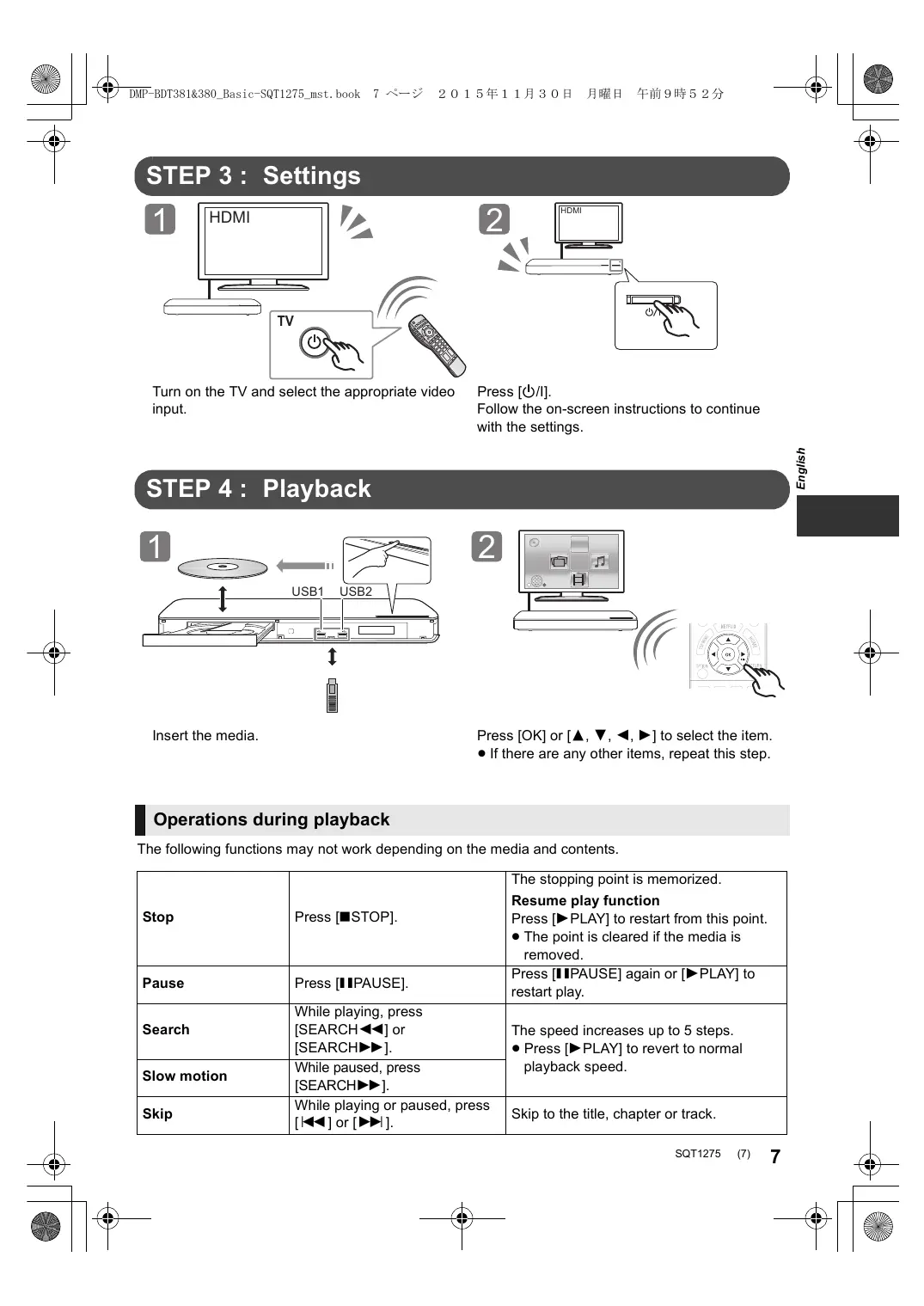 A more detailed operating instruction is available in “Operating Instructions (PDF format)”. To read it, download it from the website. http://av.jpn.support.panasonic.com/support/ global/cs/bd/oi/index.html