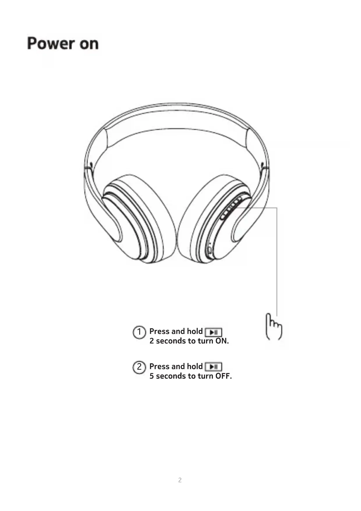 7s to enter pairing mode. 3 Press and hold The LED indicator lights of the headphone will flash blue every 10 seconds when they are successfully connected via Bluetooth . 3Red flash Red on Blue on 4Music Call Voice Assistant Volume Tracking x 1 x 1 x 1 x 1 x 1 2 sec 2 sec 2 sec 2 sec 5Press and hold at the same time for 5s to reset