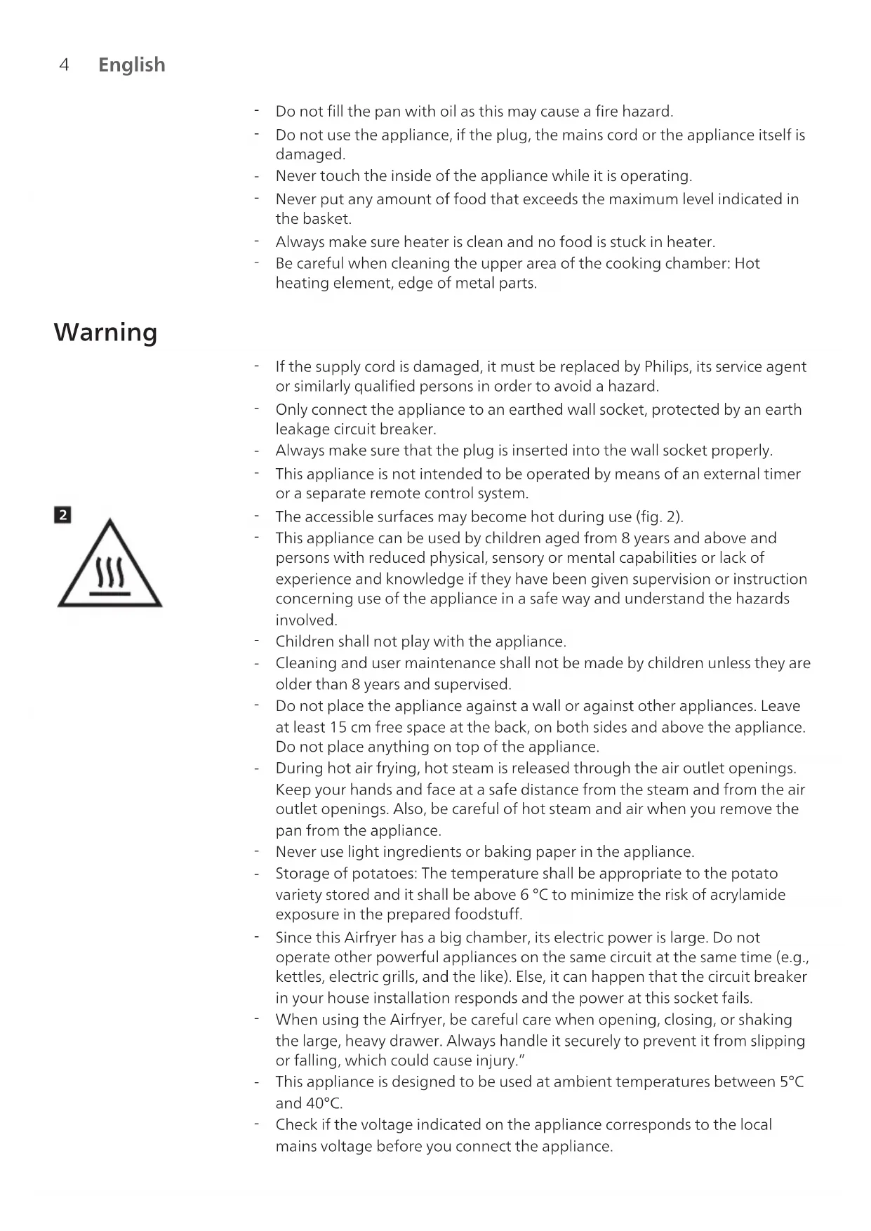 If the appliance is used improperly or for professional or semi-professional purposes or if it is not used according to the instructions in the user manual, the guarantee becomes invalid and Philips refuses any liability for damage caused.