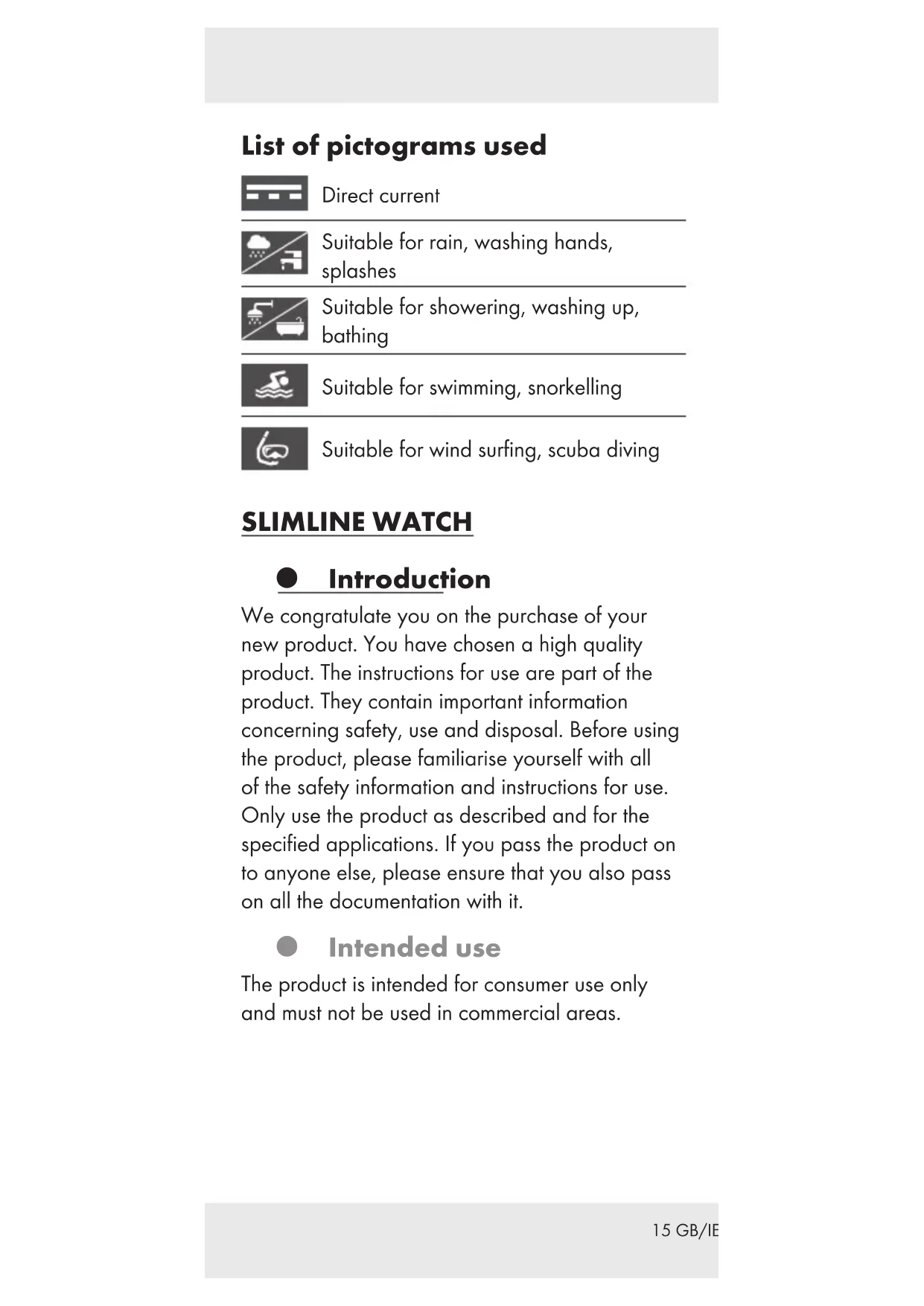 Fastener (HG05230E) Technical data Battery: 1 x 1.5 V Button cell (type SR626SW) Scope of delivery Immediately after unpacking, please check the package contents for completeness and if the product and all parts are in good condition. 1 Watch 1 Battery (pre-installed) 1 Set of instructions for use 1 Spare link (HG05230E) Before first use Remove all packaging materials from the product. Changing the battery Note: Have batteries changed in a specialist shop.17 GB/IE Setting the time