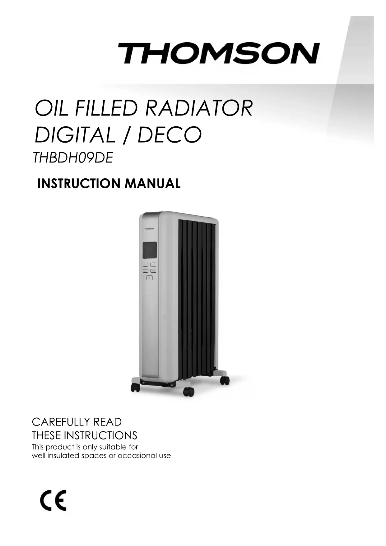DIGITAL / DECO THBDH09DE INSTRUCTION MANUAL CAREFULLY READ THESE INSTRUCTIONS This product is only suitable for well insulated spaces or occasional useSAFETY RECOMMENDATIONS Warning! The heater must not be switched on, only when the wheels are fully mounted.