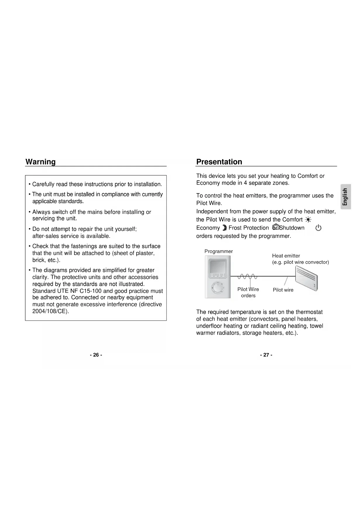 heating IMPORTANT: The heat emitter must be in automatic mode (PROG, AUTO, , etc. depending on model) to receive orders from the programmer. English- 31 - Pilot wire convectorsPilot wire convectors Zone 3 circuit breaker