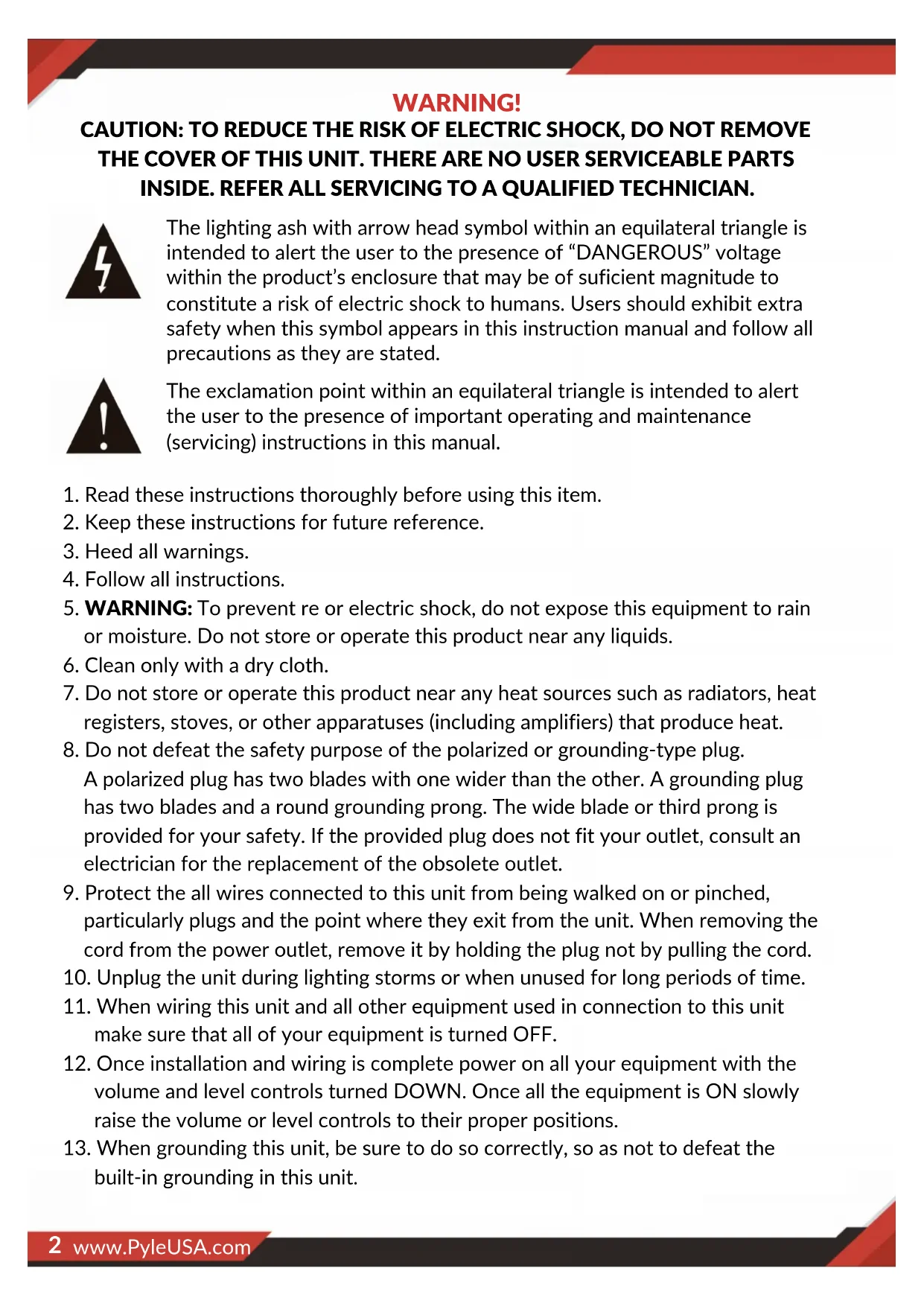 built-in grounding in this unit. www.PyleUSA.com 2www.PyleUSA.com