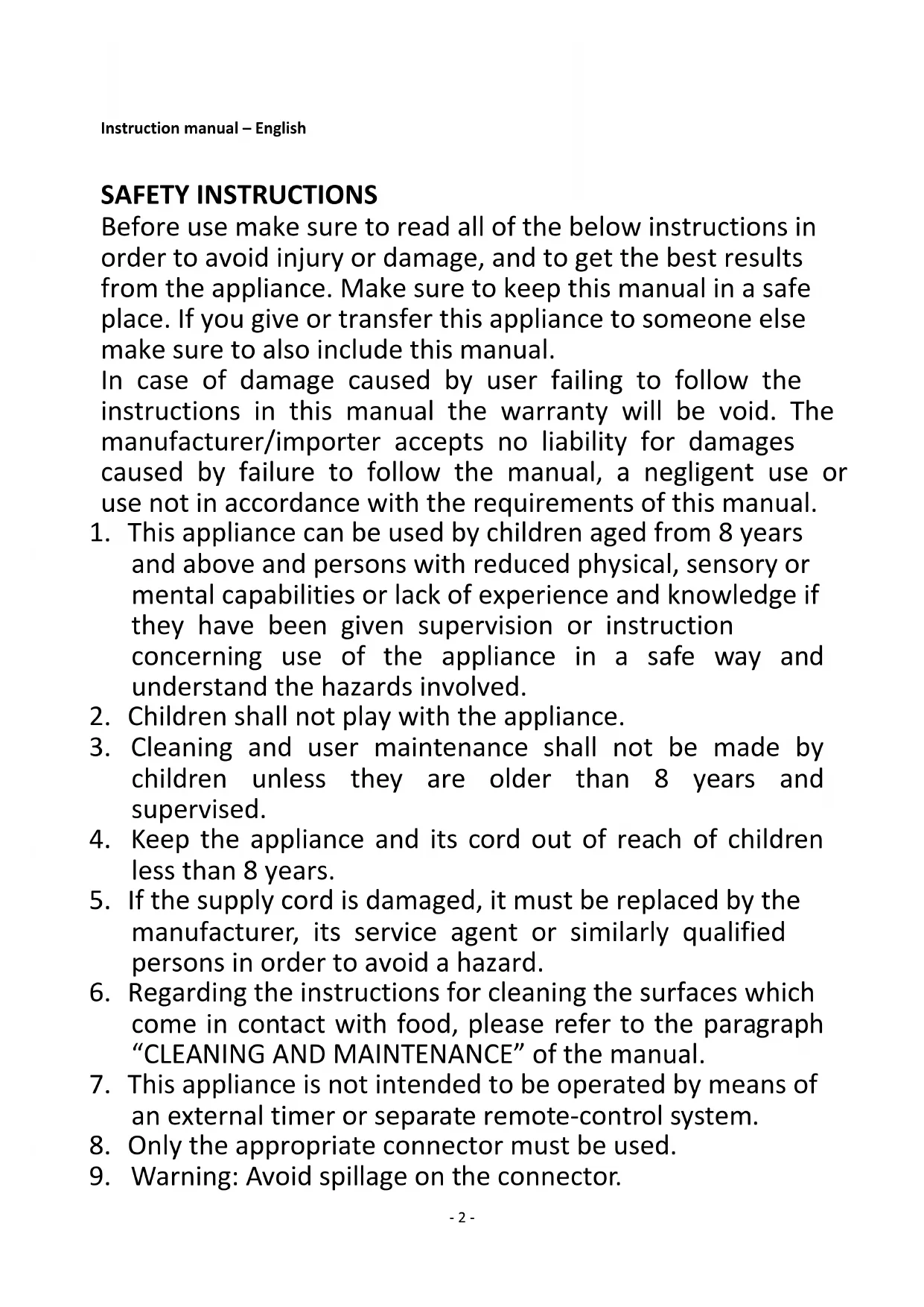 2. Children shall not play with the appliance.