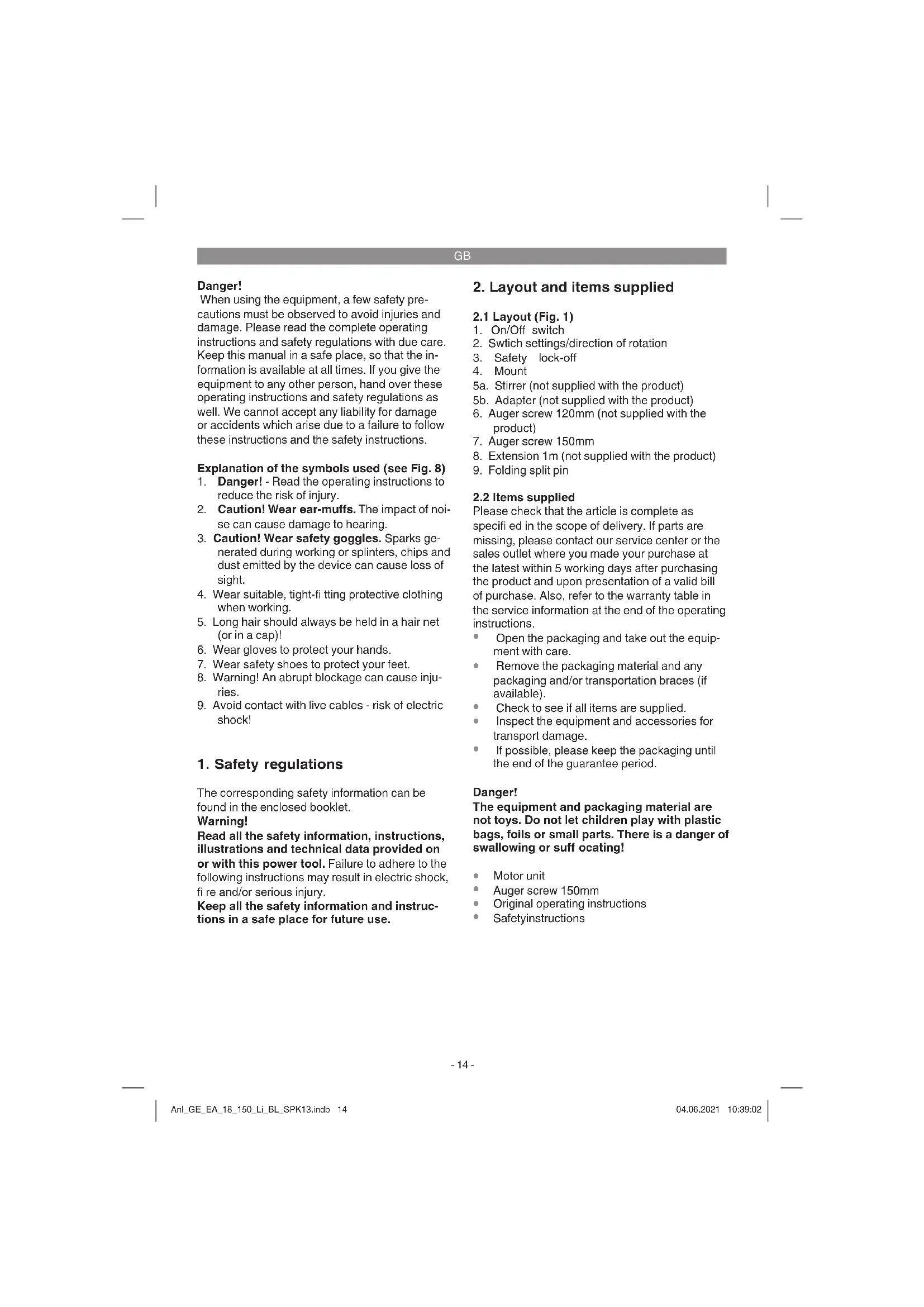 rations if the equipment is used over a pro- longed period or is not properly guided and maintained. Anl_GE_EA_18_150_Li_BL_SPK13.indb 15Anl_GE_EA_18_150_Li_BL_SPK13.indb 15 04.06.2021 10:39:0204.06.2021 10:39:02GB