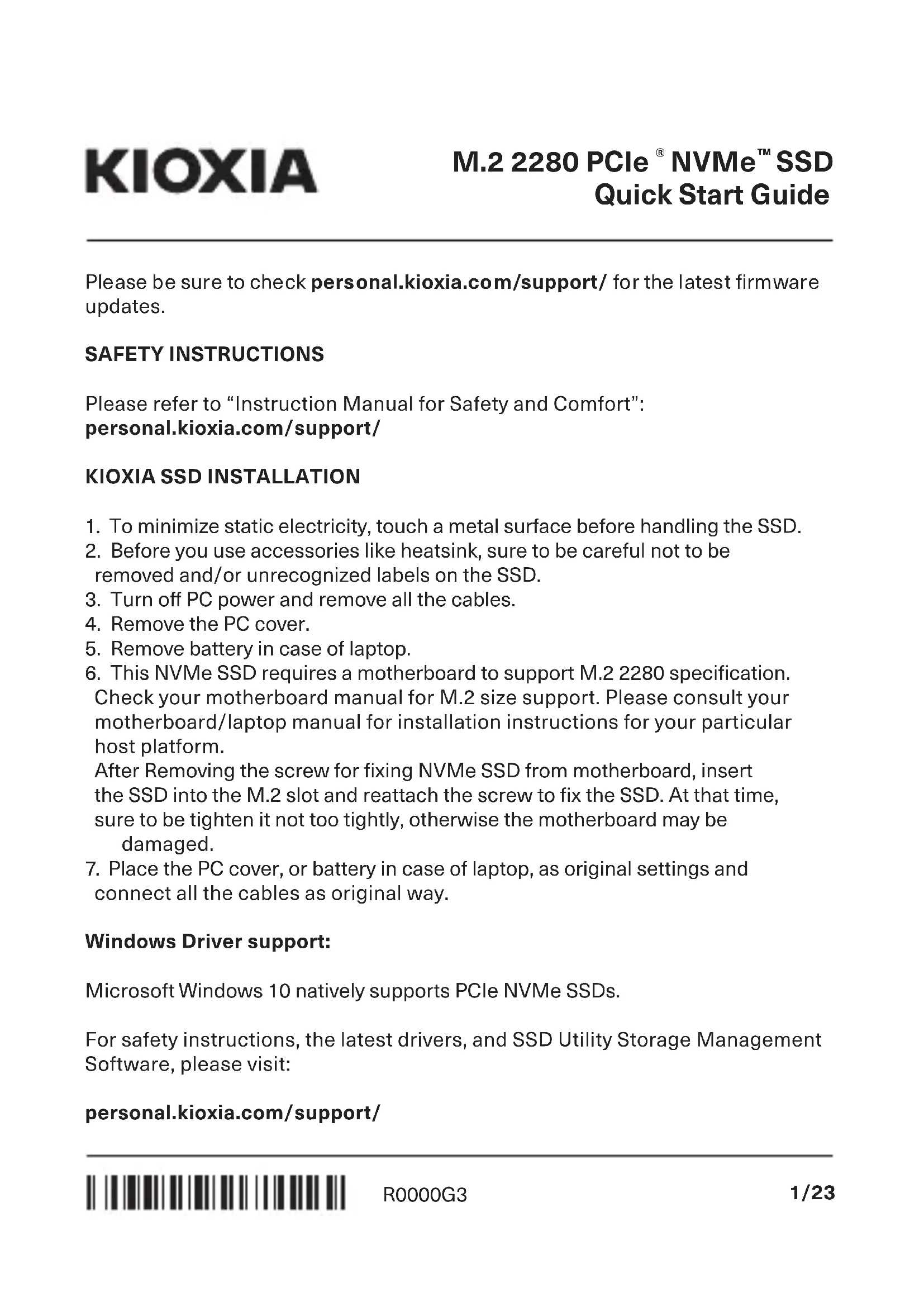 Exceria Plus G2 - SSD Kioxia - Free user manual and instructions