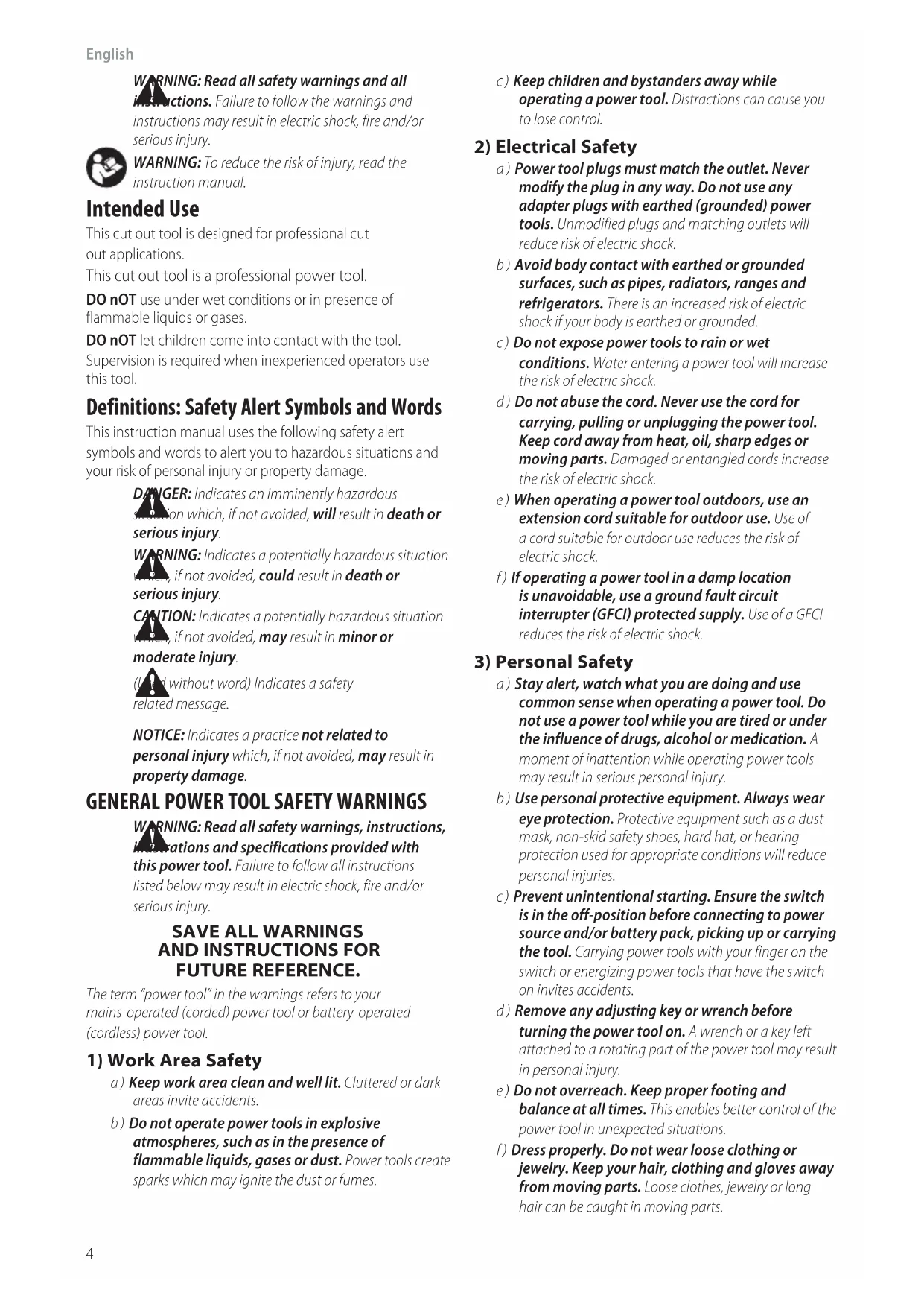 instructionmanual.5 English Additional Specific Safety Rules for Cut‑Out Tools