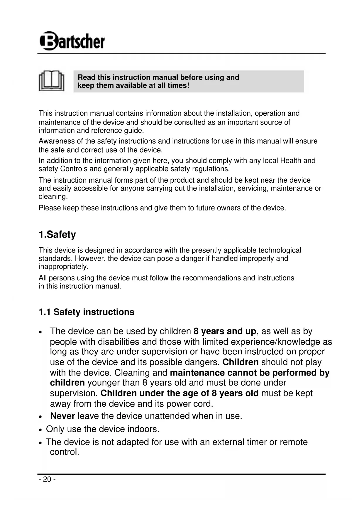 Find the device manual for free 700778G BARTSCHER in PDF.