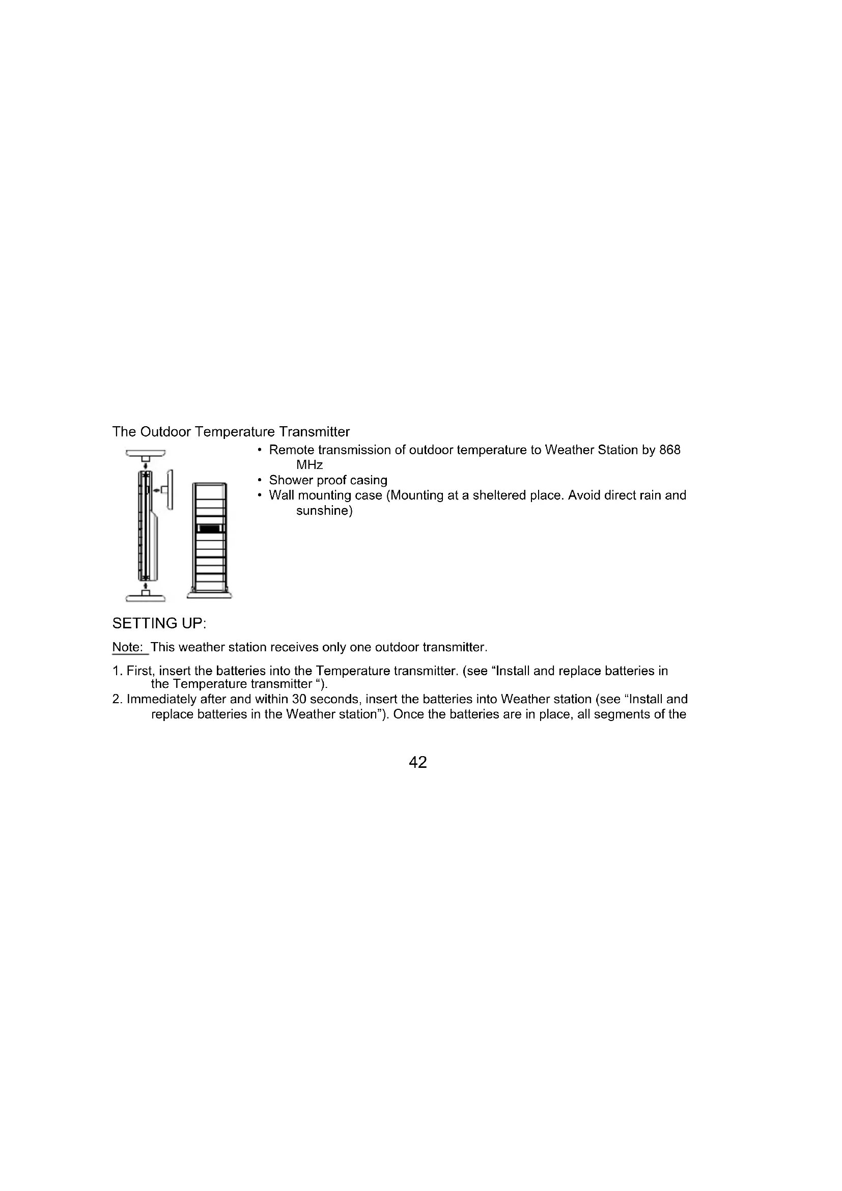 - Table standing/ Wall mounting42 The Outdoor Temperature Transmitter