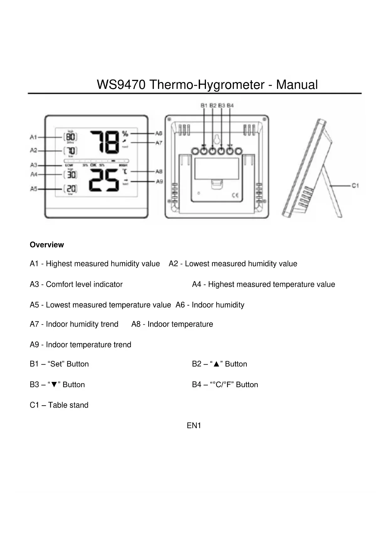 Download the instructions for your Climate control in PDF format for free! Find your manual WS 9470 - TECHNOLINE and take your electronic device back in hand. On this page are published all the documents necessary for the use of your device. WS 9470 by TECHNOLINE.