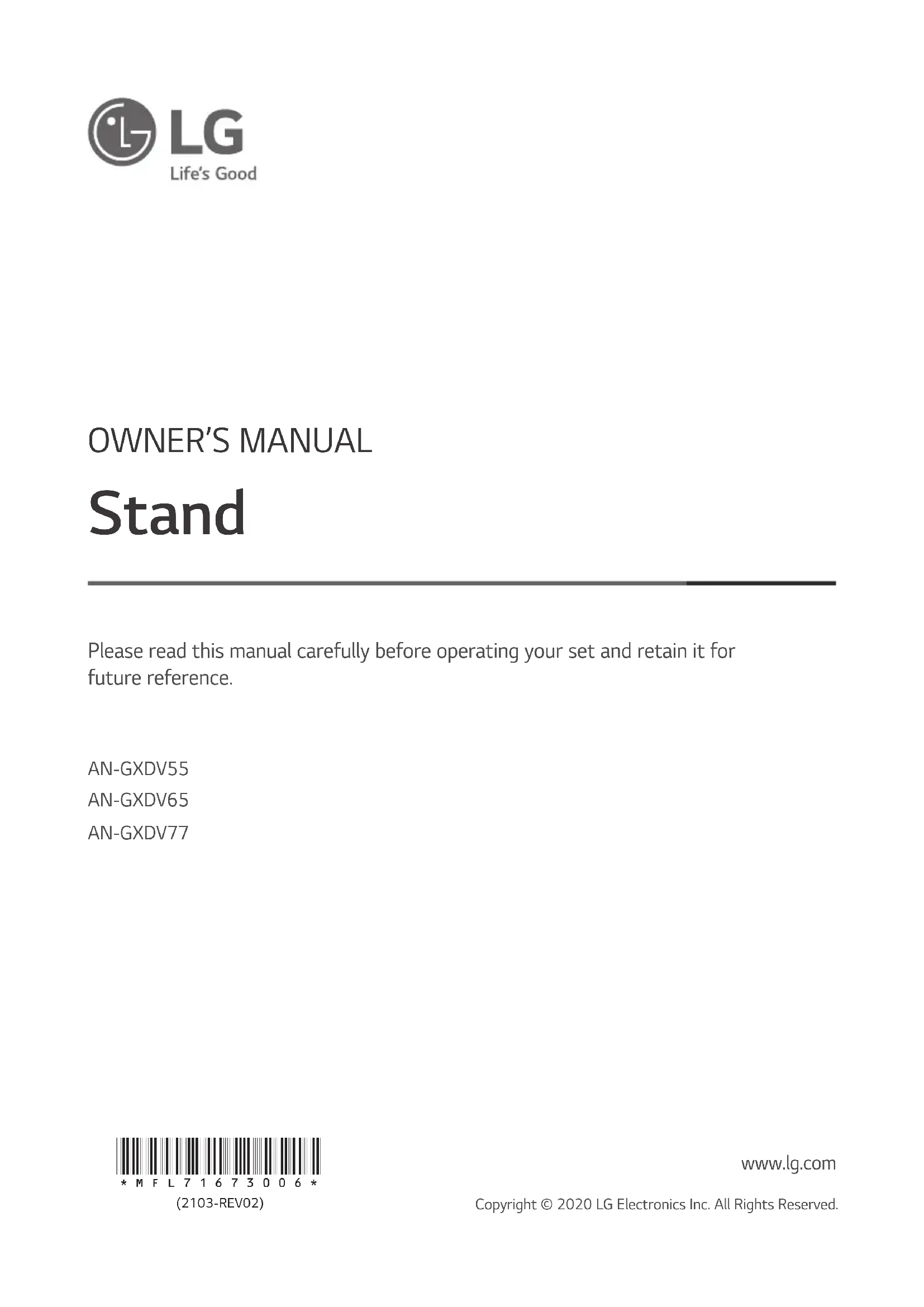 Please read this manual carefully before operating your set and retain it for future reference. www.lg.com Copyright © 2020 LG Electronics Inc. All Rights Reserved. *MFL71673006* (2103-REV02)ENGLISH_index