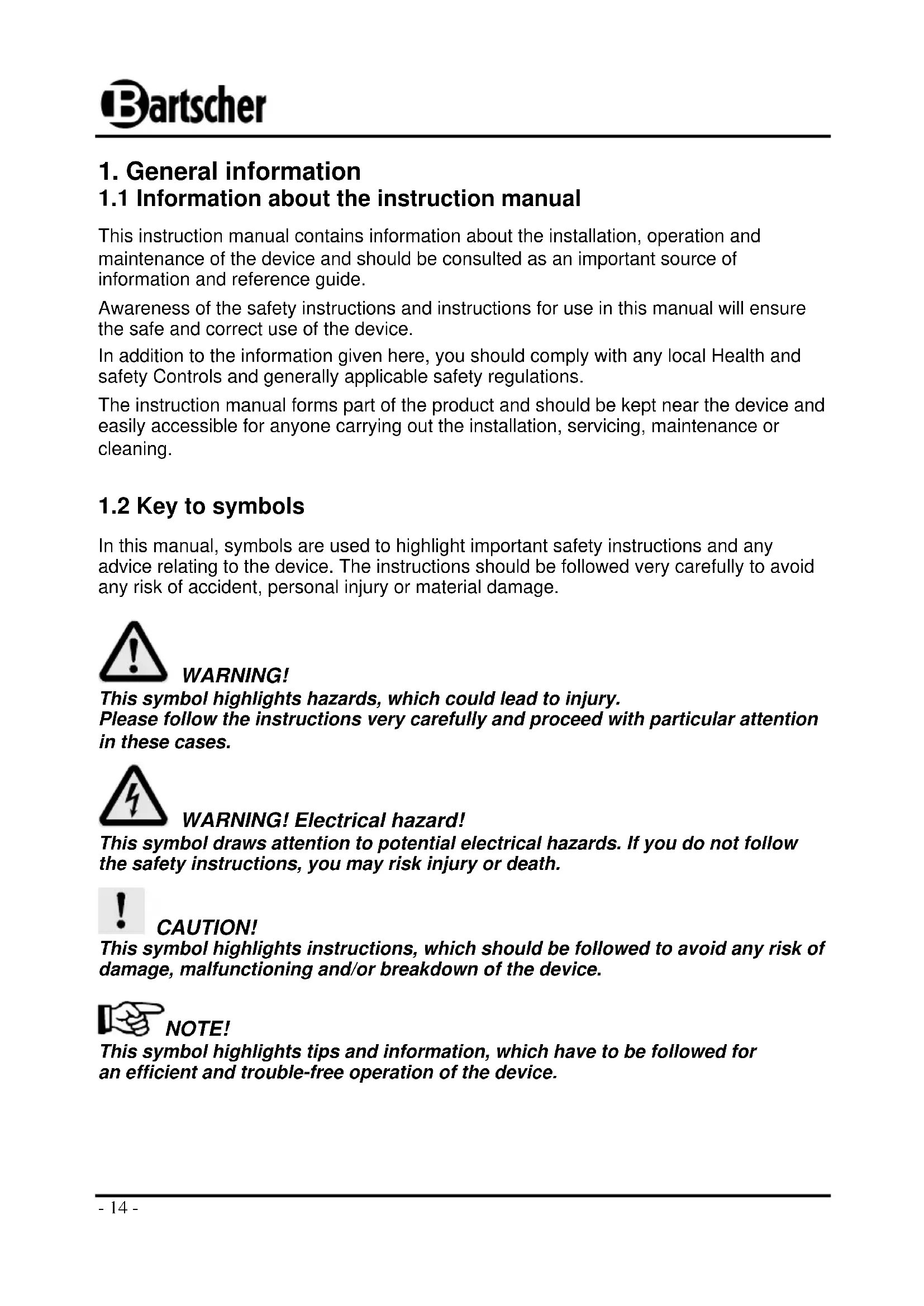 1.1 Information about the instruction manual 14