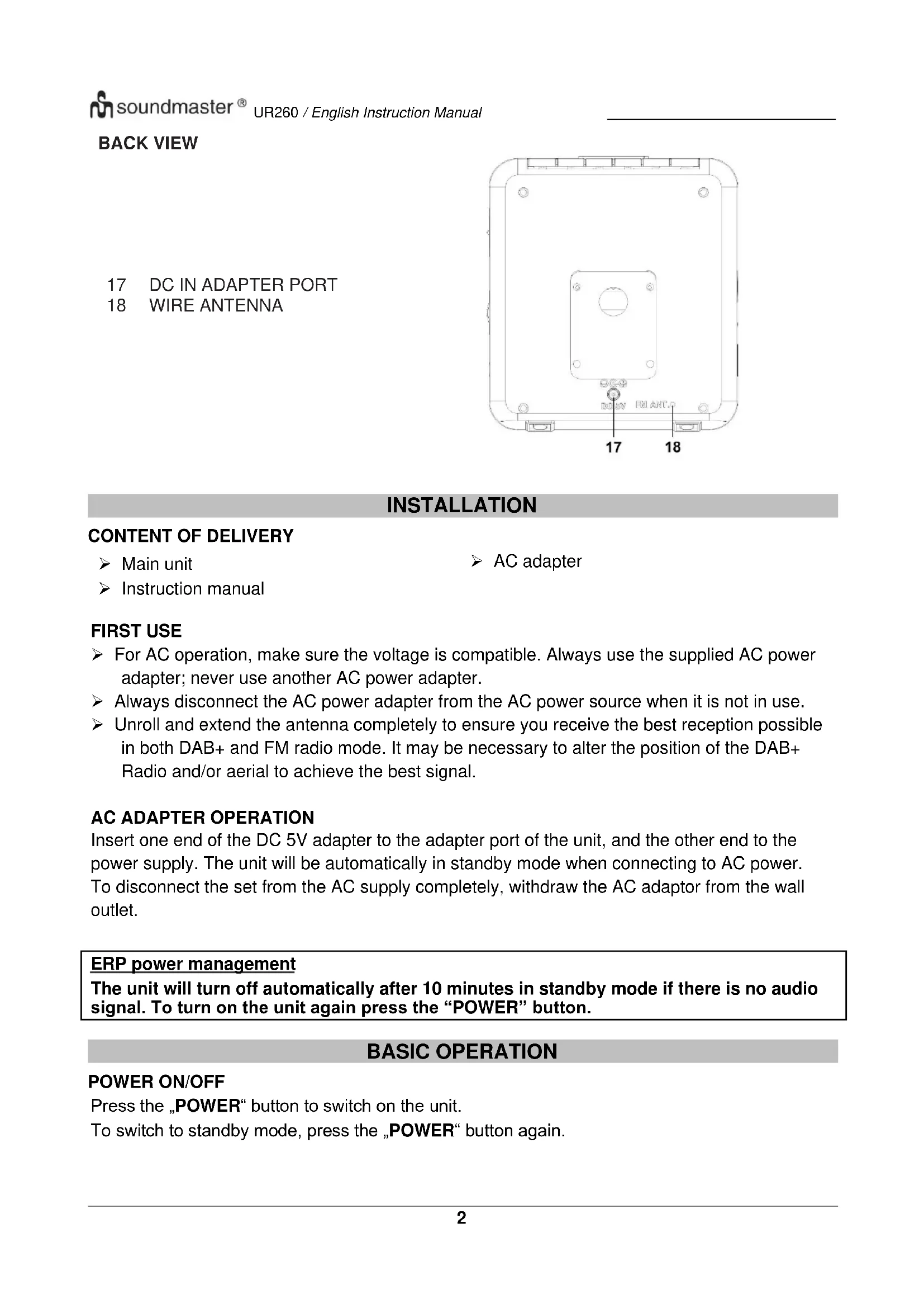 USER MANUAL UR260 Soundmaster