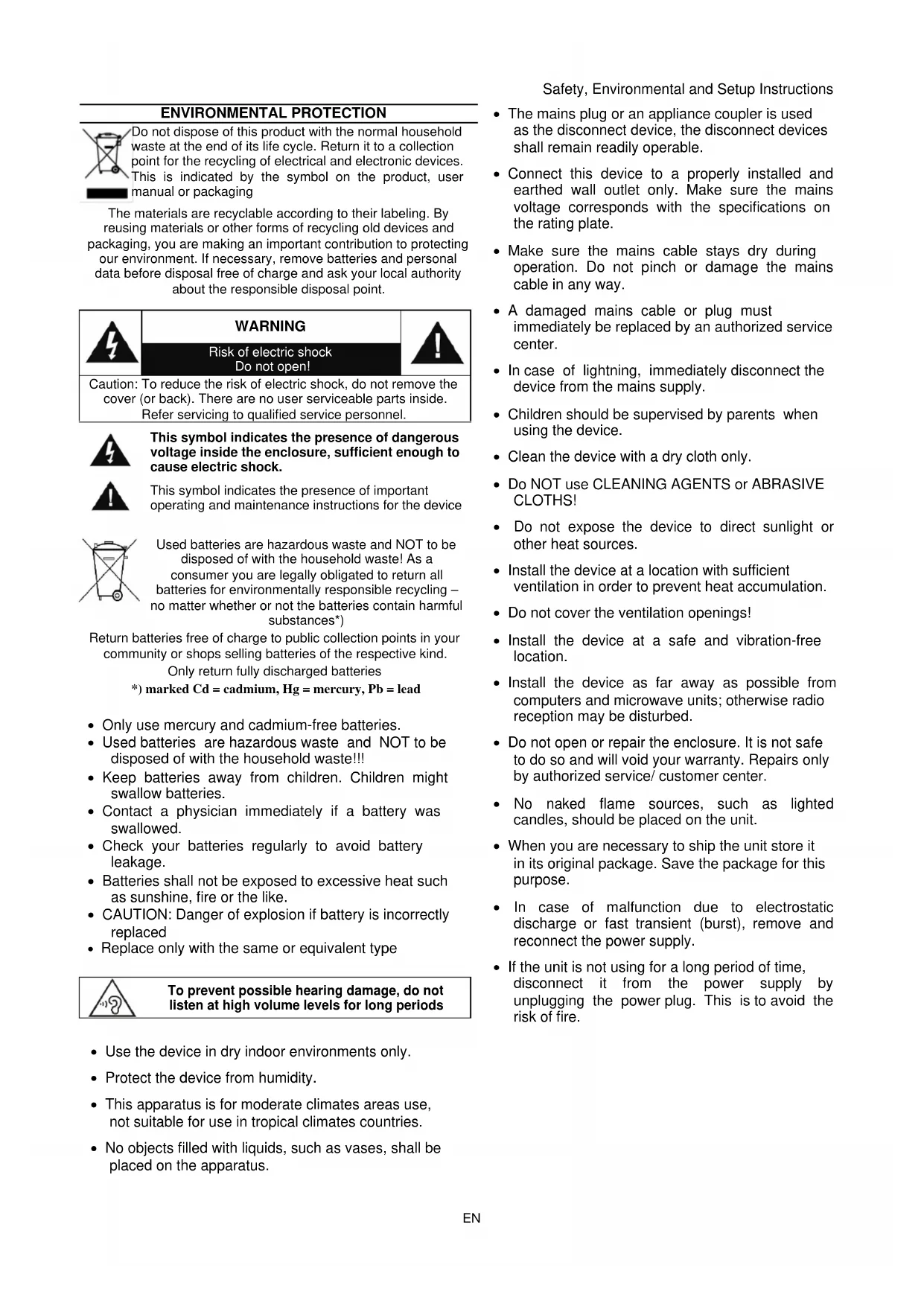 Return batteries free of charge to public collection points in your community or shops selling batteries of the respective kind. Only return fully discharged batteries *) marked Cd = cadmium, Hg = mercury, Pb = lead