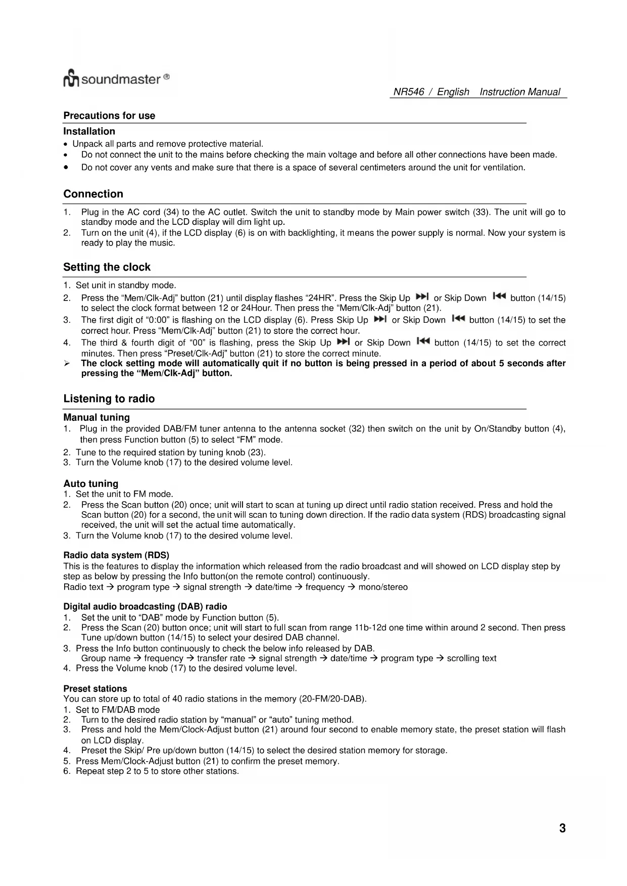 USER MANUAL NR546 Soundmaster