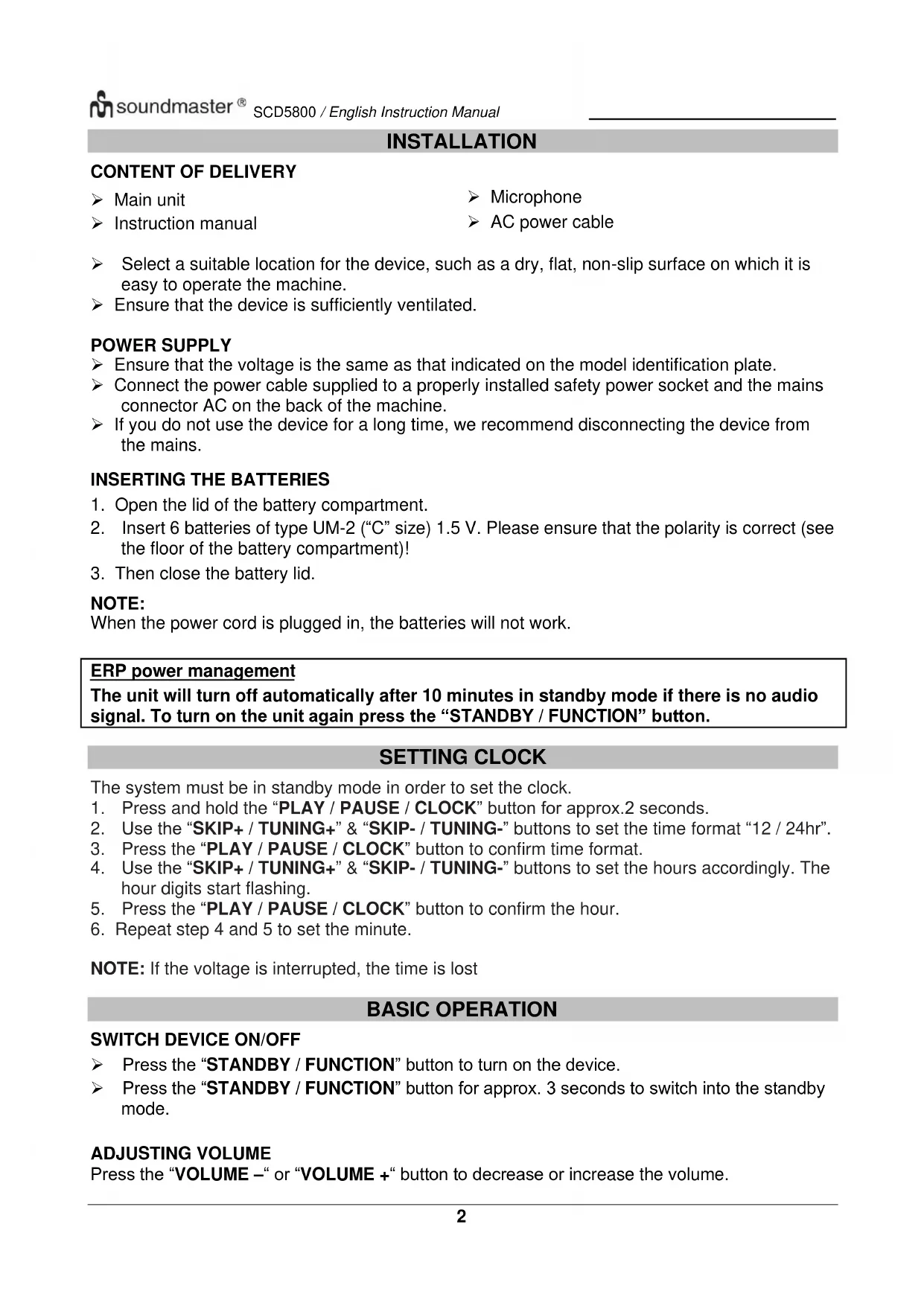 USER MANUAL SCD5800 Soundmaster