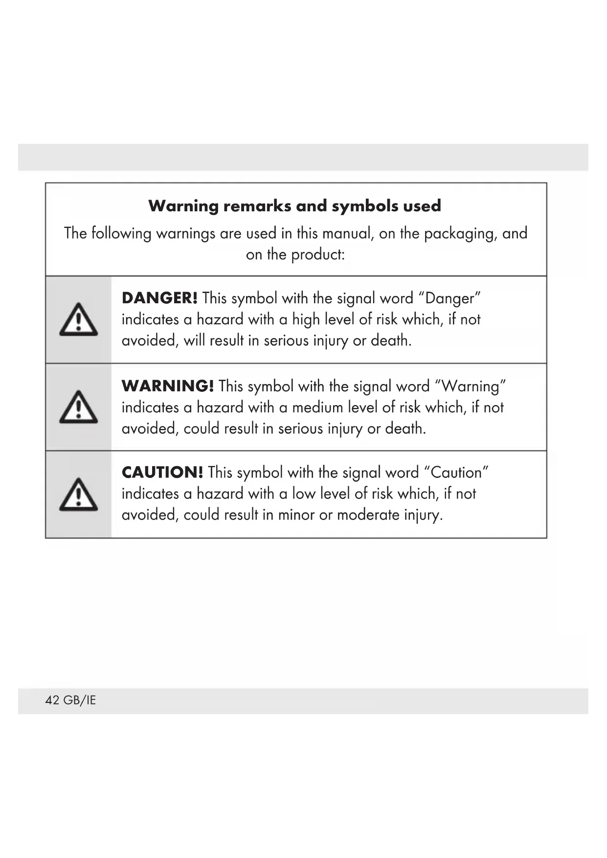 Supported profile A2DP, AVRCP, HSP, HFP Frequency band 2402 to 2480 MHz Max. transmitted power < 20 mW Range approx. 10 m Rechargeable battery Li-ion, 3.7 V, 85 mAh, 0.32 Wh Charging time approx. 2 hours (complete charging cycle) Operating time Music approx. 7hours (at medium volume) Phone approx. 2.5hours Ingress protection IPX4 Operating temperature +10 to +35 °C Humidity (no condensation) 10 to 70 % relative humidity Storage temperature 0 to +40 °C Dimensions approx. 51x 28x 44 mm (headphones) approx. 75 x 76 x 50 mm (charging box) Weight approx. 11.6 g (both headphones) approx. 72 g (charging box) The specification and design may be changed without notification.51GB/IE Safety notices BEFORE USING THE PRODUCT, FAMILIARISE YOURSELF WITH ALL OF THE SAFETY INFORMATION AND INSTRUCTIONS FOR USE! WHEN PASSING THIS PRODUCT ON TO OTHERS, ALSO INCLUDE ALL THE DOCUMENTS! In the case of damage resulting from non-compliance with these operating instructions the guarantee claim becomes invalid! No liability is accepted for consequential damage! In the case of material damage or personal injury caused by incorrect handling or non-compliance with the safety instructions, no liability is accepted!52 GB/IE Children and persons with disabilities m WARNING! DANGER TO LIFE AND RISK OF ACCIDENT FOR INFANTS AND CHILDREN! m DANGER! Risk of suffocation! Never leave children unsupervised with the product, its accessories and the packaging materials. The packaging materials pose a suffocation hazard. Children frequently underestimate the dangers. The packaging materials are not toys. This product may be used by children age 8 years and up, as well as by persons with reduced physical, sensory or mental capacities or lacking experience and/or knowledge, so long as they are supervised or instructed in the safe use of the product and understand the associated risks. Do not allow children to play with the product. Cleaning and user maintenance shall not be performed by children without supervision. The product is not a toy. m WARNING! Choking hazard due to small parts! The product contains small parts that can be swallowed.53GB/IE m DANGER DUE TO DIMINISHED PERCEPTION! Do not use the headphones while driving a vehicle or riding a bicycle, operating machinery, or in other situations, where diminished perception caused by ambient noise could endanger you or others. Also observe the laws and regulations of the country in which you use the headphones. Caution, high sound pressure! Be careful when using the headphones. Using headphones for a long period of time and at high volume can lead to hearing damage to the user. Always set the volume to a low level first and adjust it to a comfortable level. Always use headphones so that the perception of the surrounding noise is guaranteed. m ATTENTION! RISK OF PROPERTY DAMAGE This product does not contain any parts which can be serviced by the user. The rechargeable battery cannot be replaced. The product (headphones and charging box) shall not be opened. Keep the charging box away from moisture, dripping and splash water! Do not place burning candles or other open fire on or next to the product. Check the product before every use! Discontinue use if any damage to the product or the charging cable is detected!54 GB/IE If you notice smoke or unusual noise or odour, switch the product off immediately and remove the USB cable. Sudden temperature changes may cause condensation inside the product. In this case, allow the product to acclimate for some time before using it to prevent short circuits! Do not operate the product near heat sources, e.g. radiators or other devices emitting heat! m WARNING – Radio interference Switch the product off on airplanes, in hospitals, service rooms, or near medical electronic systems. The wireless signals transmitted could impact the functionality of sensitive electronics. Keep the product at least 20 cm from pacemakers or implantable cardioverter defibrillators, as the electromagnetic radiation may impair the functionality of pacemakers. The radio waves transmitted could cause interference in hearing aids. Do not place the product near flammable gases or potentially explosives areas (e.g. paint shops) with the wireless components on, as the radio waves emitted can cause explosions and fire.55GB/IE The range of the radio waves varies by environmental conditions. In the event of wireless data transmission, unauthorised third parties receiving the data cannot be excluded. The OWIM GmbH & Co KG is not responsible for interference with radios or televisions due to unauthorised modification of the product. The OWIM GmbH & Co KG further assumes no liability for using or replacing cables and products not distributed by OWIM. The user of the product is fully responsible for correcting interference caused by unauthorised modification of the product (refer to previous two paragraphs).56 GB/IE Safety instructions for built-in rechargeable batteries WARNING! RISK OF EXPLOSION! Do not throw the product into fire. Avoid extreme environmental conditions and temperatures, which could affect rechargeable batteries, e.g. radiators / direct sunlight. If rechargeable batteries have leaked, avoid contact with skin, eyes and mucous membranes with the chemicals! Flush immediately the affected areas with fresh water and seek medical attention! Do not cover the product during operation or charging. Otherwise the product can overheat. This product contains a rechargeable battery, which can lead to fire, explosion or leakage of hazardous substances in case of incorrect application. Prior to first use Remove the protective foil between the headphones[1] and the charging/storage box[7].57GB/IE Charging the charging/storage box battery Before first use, the charging/storage box battery must be charged. Charging via USB Connect the charging/storage box[7] via the USB-C charging port[] and the included USB cable[] with a USB voltage source with an output current of at least 5