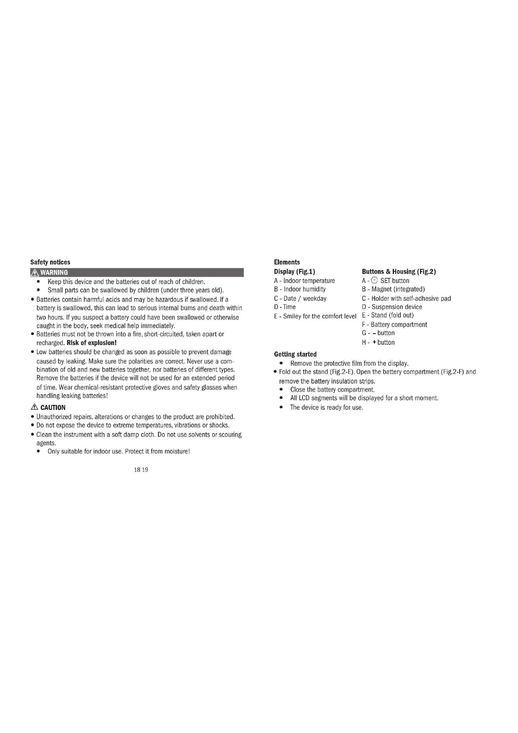 - Fasten the wall holder (Fig.2-C) with the self-adhesive foil at a suitable place and hang up the device.