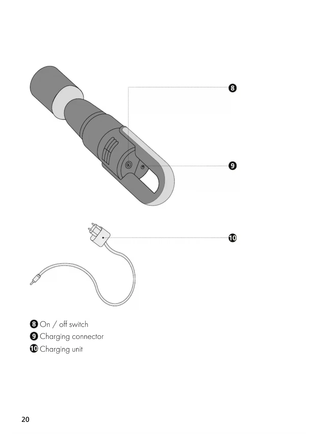 General safety instructions This device conforms to the relevant safety regulations. For safe handling of this unit, please observe the following safety instructions. Improper use can lead to personal injuries and property damages. - Before using this unit for the first time, check it for visible outer damages on the housing, charging unit and plug. Do not operate a damaged unit. - If the charging unit is damaged, it may be replaced only by an original Graef charging unit. - Always disconnect the charging unit by pulling the plug out of the so- cket; do not pull the connecting cable. - Make sure that the charging unit is safely laid; getting caught in the cable can cause the unit to drop from the working surface. - Before connecting the unit, compare the connecting data (voltage and frequency) on the type plate with those of your energy network. - These details must correspond so that no damage occurs to the unit. In case of uncertainty, contact a qualified electrician. - The socket has to be protected at least by a 10 amps circuit breaker. - Make sure that the charging unit is not damaged and is not laid across hot surfaces or sharp edges. - Do not use the unit if the charging unit or mains plug are damaged. - Repairs may be carried out only by an expert or by Graef after-sales service. Incorrect repairs may cause considerable hazards for the user. In addition, any claim under guarantee is forfeited. - Defective parts must be replaced by original spare parts only. It is only with these parts that the safety requirements are met. - This unit must not be used by children. - Keep the unit and the charging unit away from children. - This unit may be used by persons with reduced physical, sensory or mental abilities or deficiencies in experience and knowledge, if they are supervised or have been instructed in the safe use of the unit, and in addition understand the resulting dangers.18 - Children must not play with this unit. - The unit is not intended to be used with an external timer or a separate remove control. - Packaging materials must not be used for playing. There is a danger of suffocation. - In the absence of supervision and prior to assembly, disassembly or during cleaning, always disconnect the unit from the mains. - Keep the unit away from heat and sharp edges which might cause da- mages. - Keep the unit away from other heat-producing devices. - Do not immerse the unit in water or other liquids. - Do not operate the unit with wet hands. - Do not expose the unit to water. - Do not store the unit in direct sunlight or at high humidity. - Do not use the unit if one of the openings is blocked. - Do not use the unit to pick up flammable liquids, matches, cigarette butts, hot ash or other hot, combustible or smoking objects. - Do not use this unit to pick up hard, sharp objects such as glass, nails or similar things. - Do not use the unit to take up water or other liquids, because otherwise there is danger of electric shock. - Never operate the unit without the filters.19