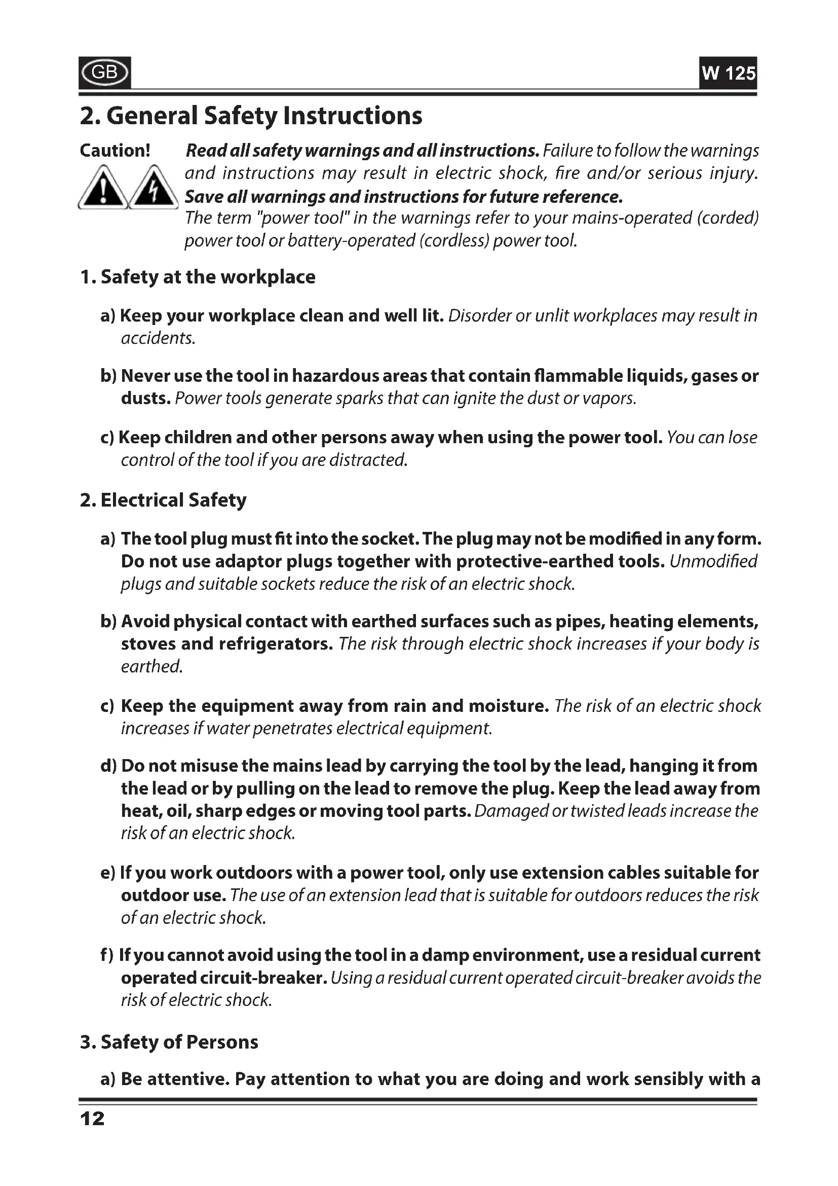 Be attentive. Pay attention to what you are doing and work sensibly with a13 W 125