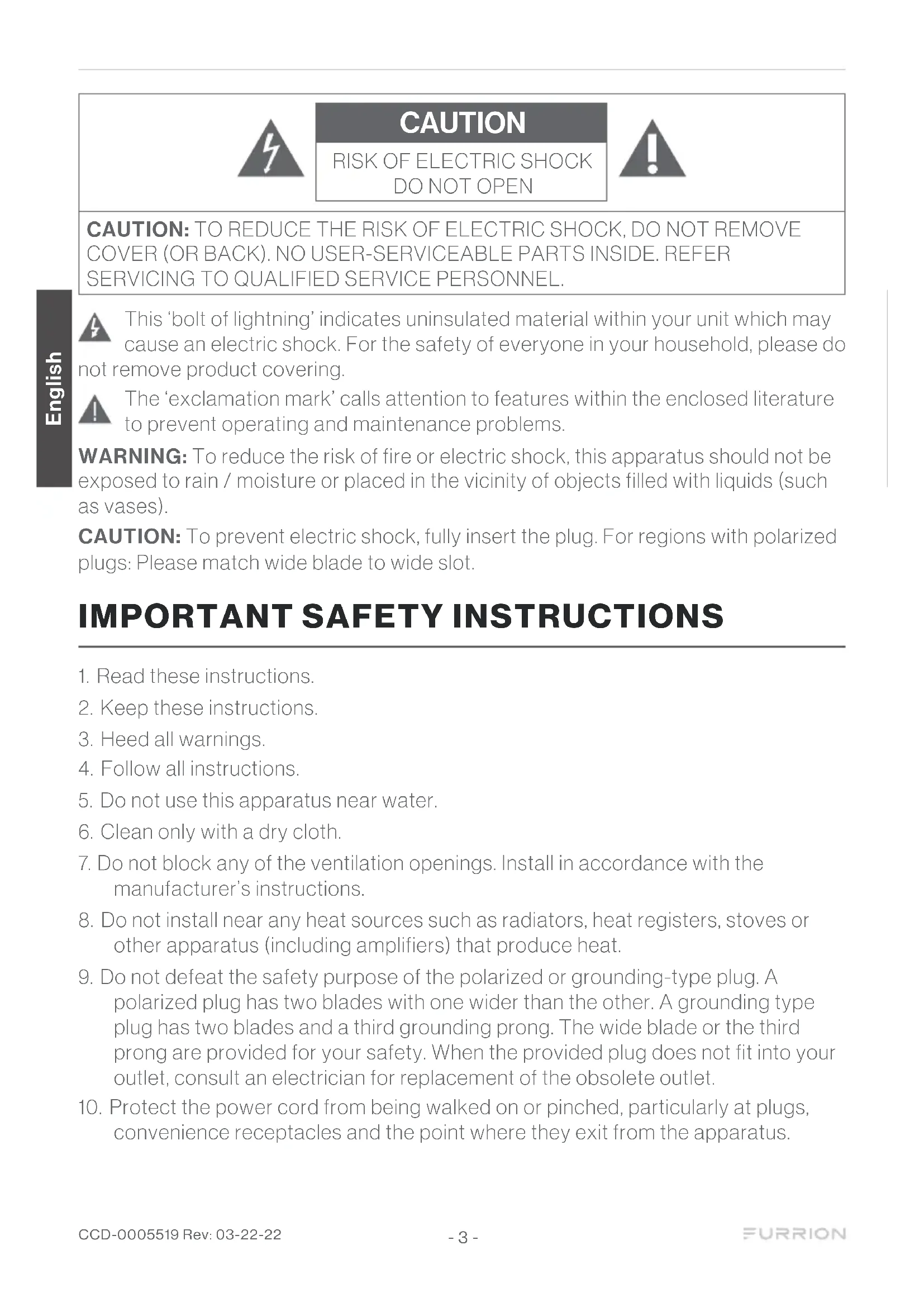 convenience receptacles and the point where they exit from the apparatus. English CCD-0005519 Rev: 03-22-22 - 3 -11. Only use attachments/accessories specified by the manufacturer.