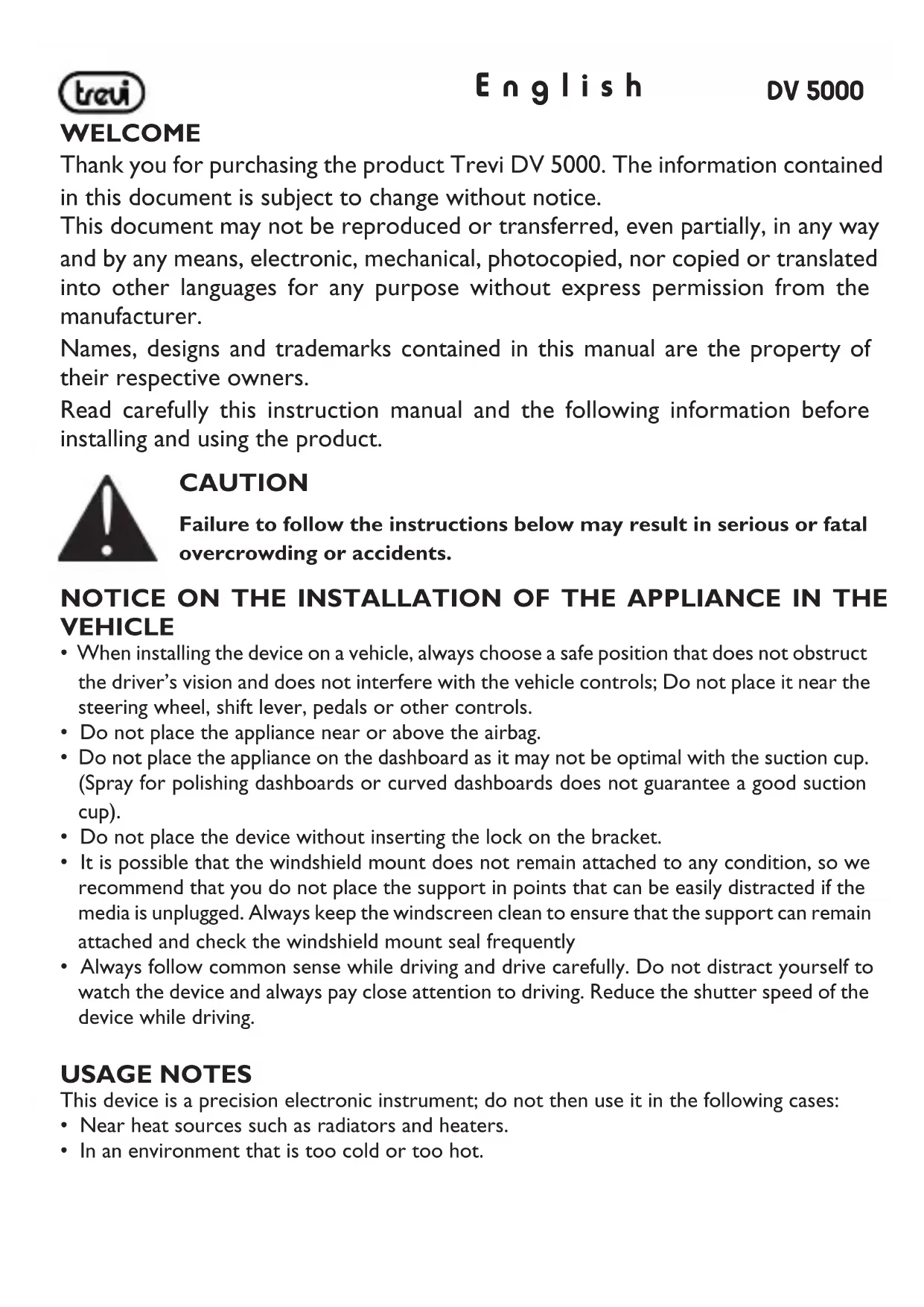 USER MANUAL DV 5000 Trevi