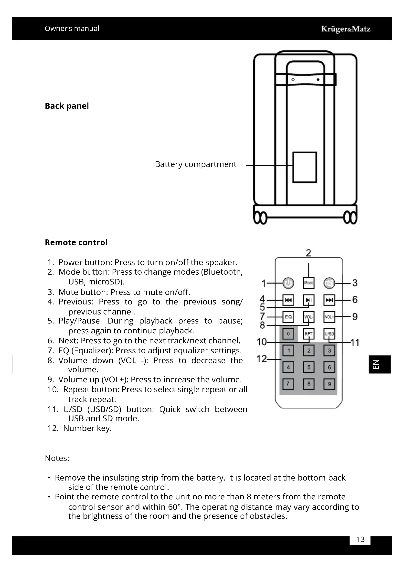 Download the instructions for your Speaker in PDF format for free! Find your manual KM0530 - Krüger&Matz and take your electronic device back in hand. On this page are published all the documents necessary for the use of your device. KM0530 by Krüger&Matz.