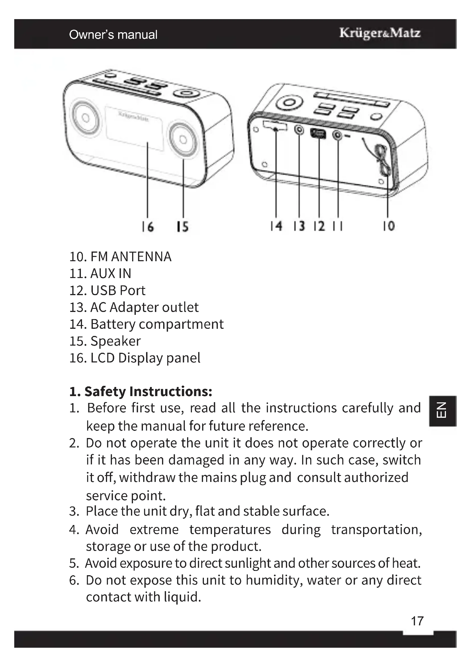 KM1150 - Radio Krüger&Matz - Free user manual and instructions